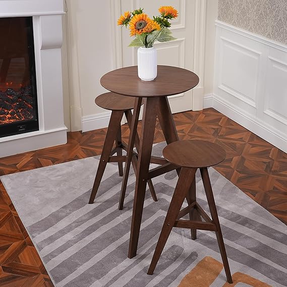 Round Wood Bar Table Set with 2 Stools