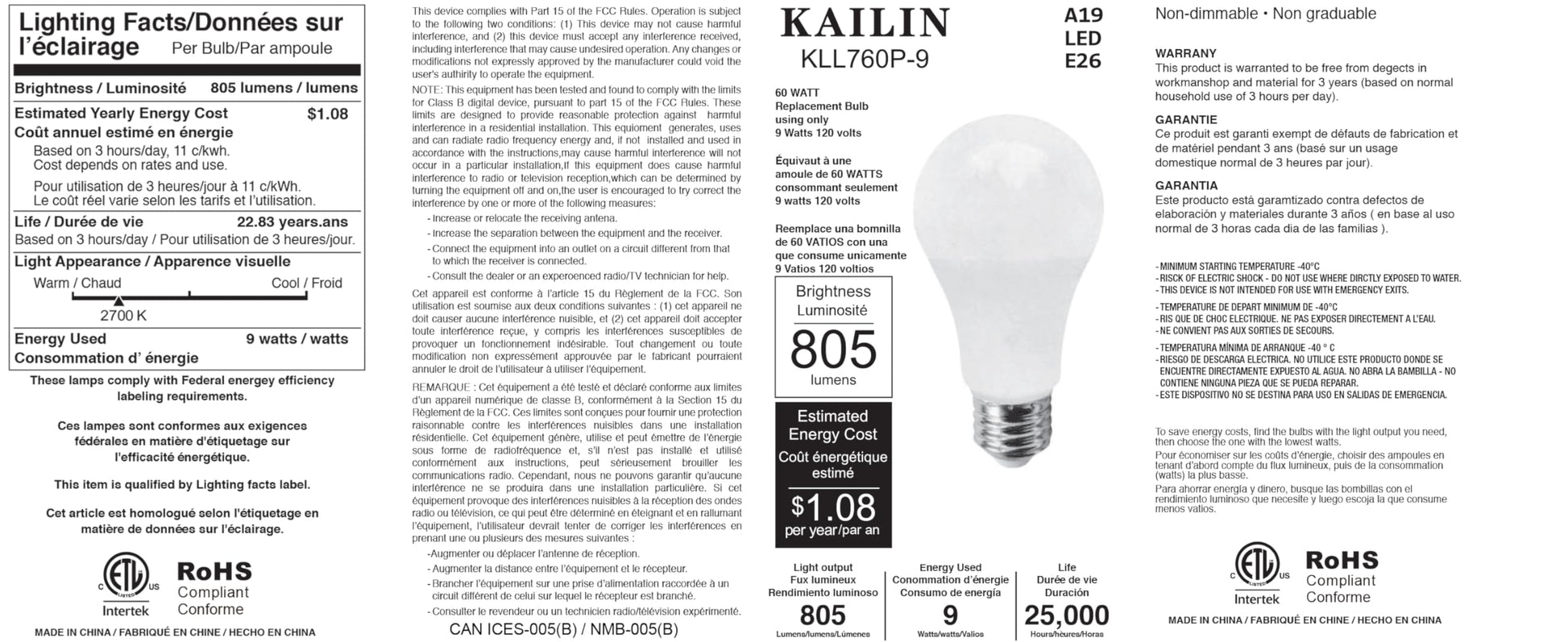 - Includes both main light (9W) and nightlight (4W) - bulbs included