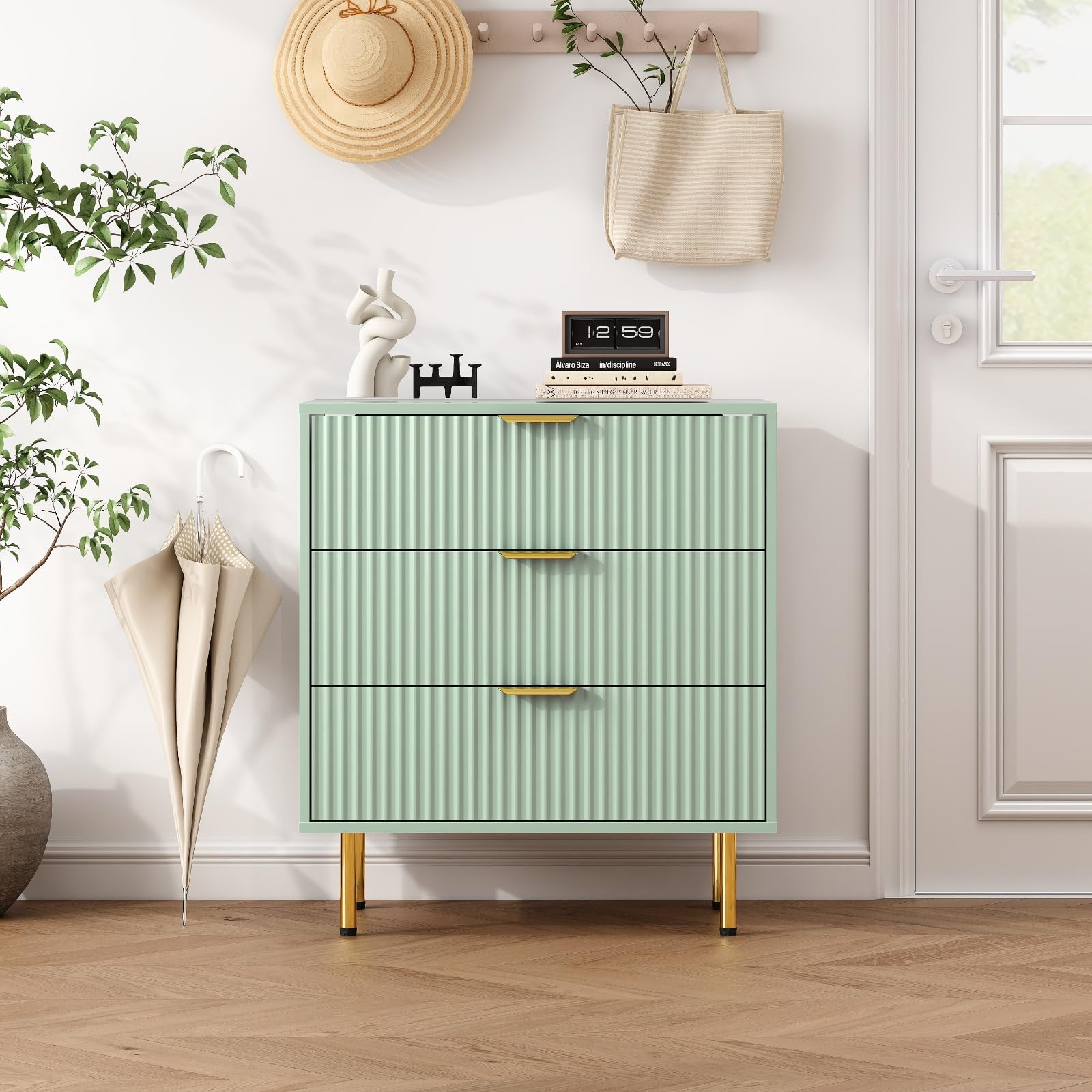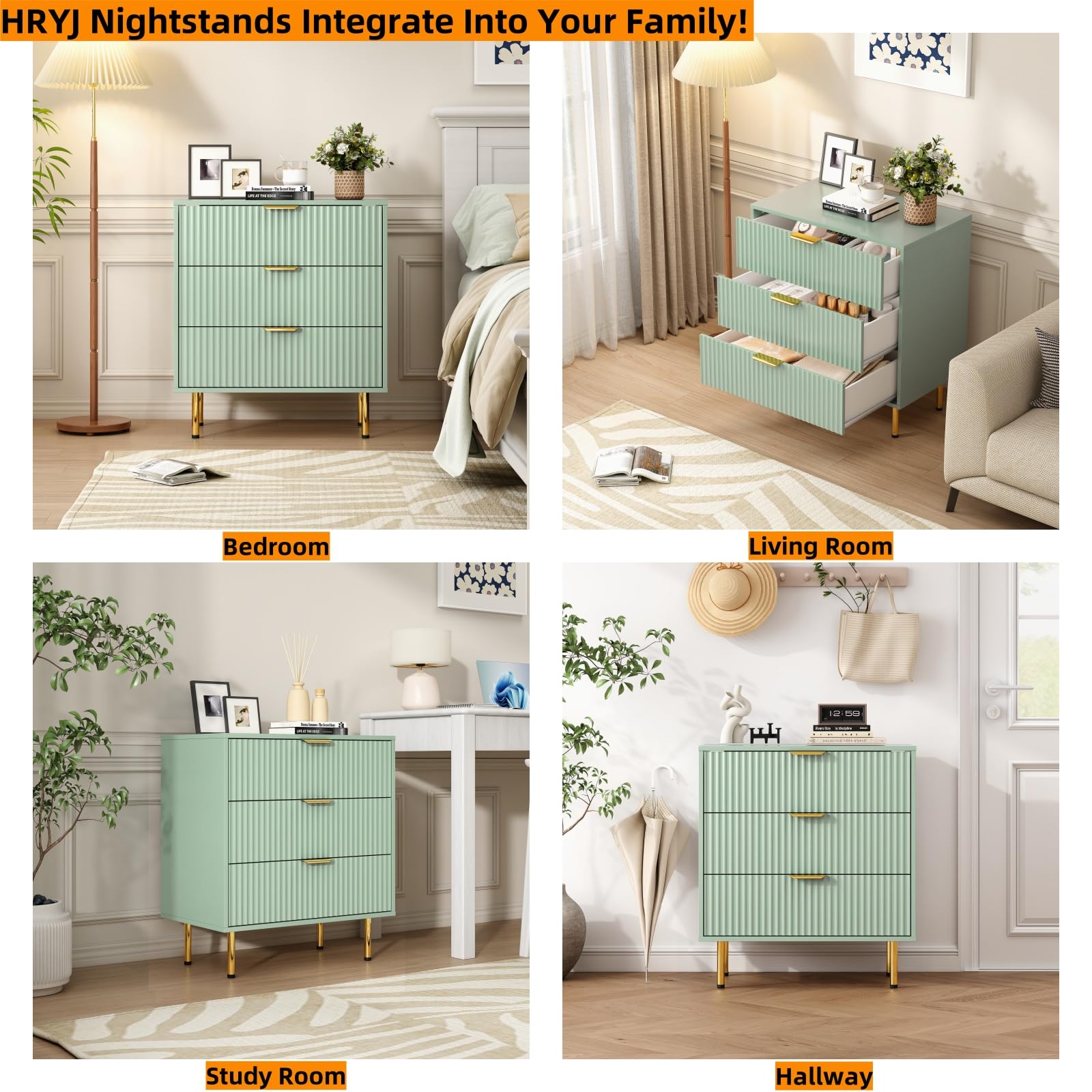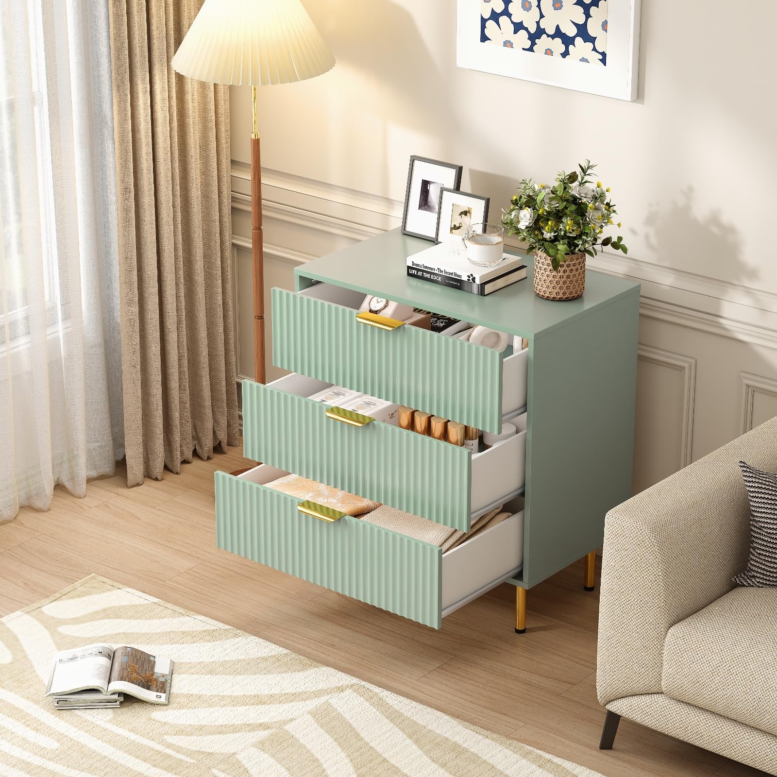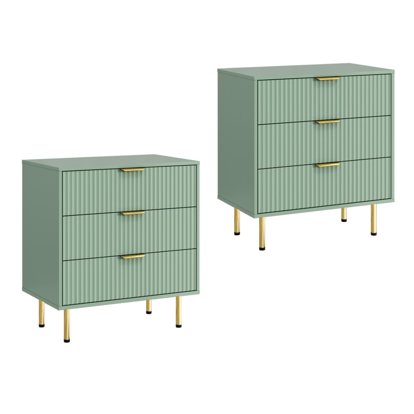Elevate your bedroom with this modern sage green fluted nightstand set. Featuring three spacious drawers and elegant fluted detailing, these nightstands combine contemporary style with practical storage. The rich wood construction ensures durability while the sophisticated sage green finish adds a touch of luxury to any space.