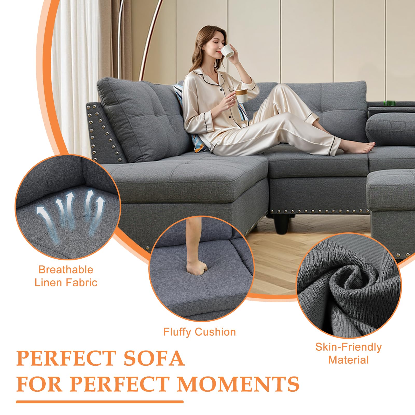 Perfect for modern living rooms, this sectional provides ample seating while maintaining a sleek aesthetic. The durable linen fabric ensures long-lasting quality and easy maintenance.