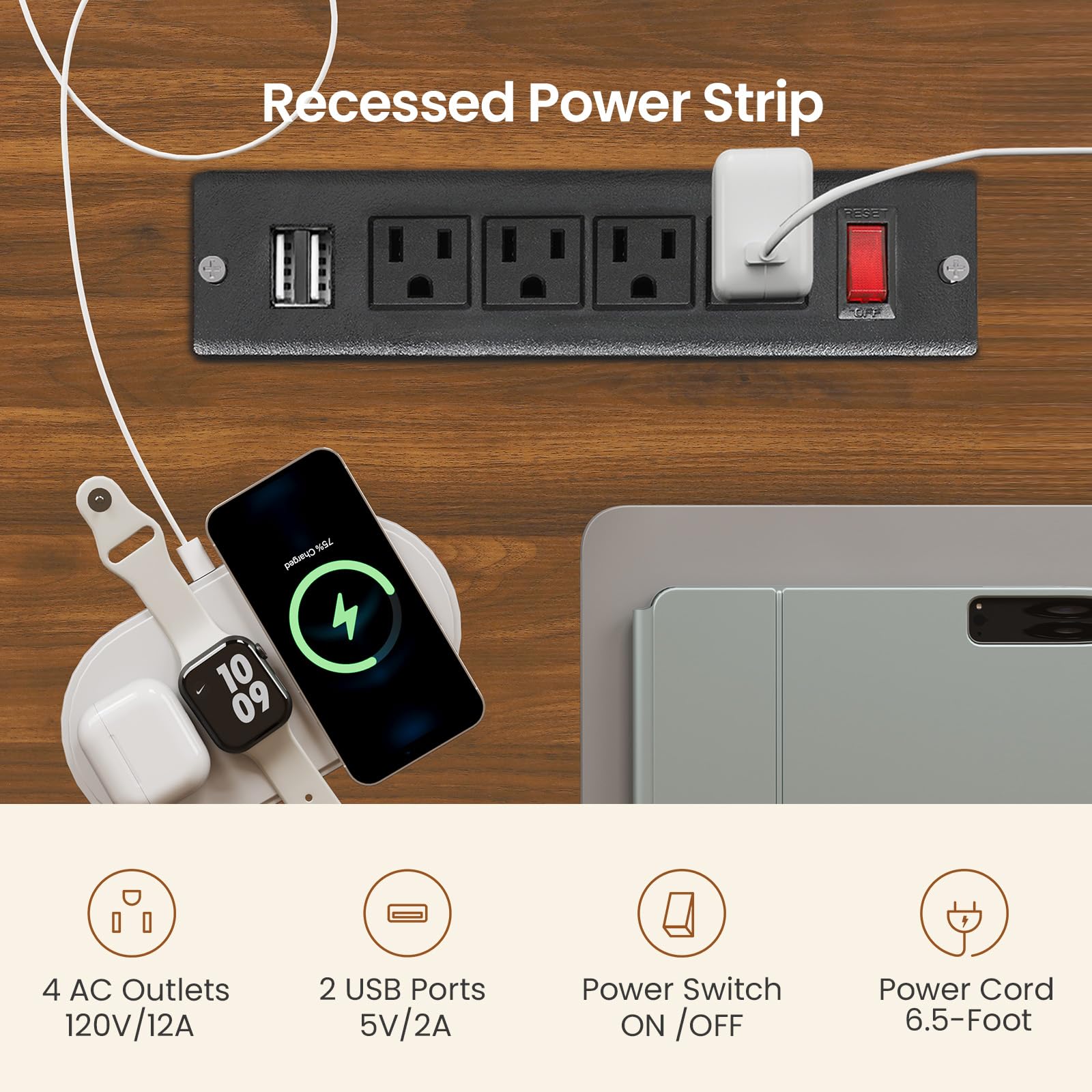 - 【Led Light Strips and Power Outlet 】 The gaming computer desk comes with RGB LED light strip, remote control via APP, Over 60000 colors and 29 flashing modes for your to choose. And the power outlet with four power sockets and two USB ports is convenient charging of your devices.