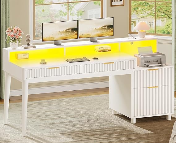 - 【Desk with Drawers】The SEDETA office desk with a file drawer can hold 3 sizes of files - Legal/Letter/A4, and 3 box drawer can place home or office items. The 59 inch computer desk with drawers can be for full-size printers, files, books, or other items, leaving large space for writing, studying, and other home office desk activities.
