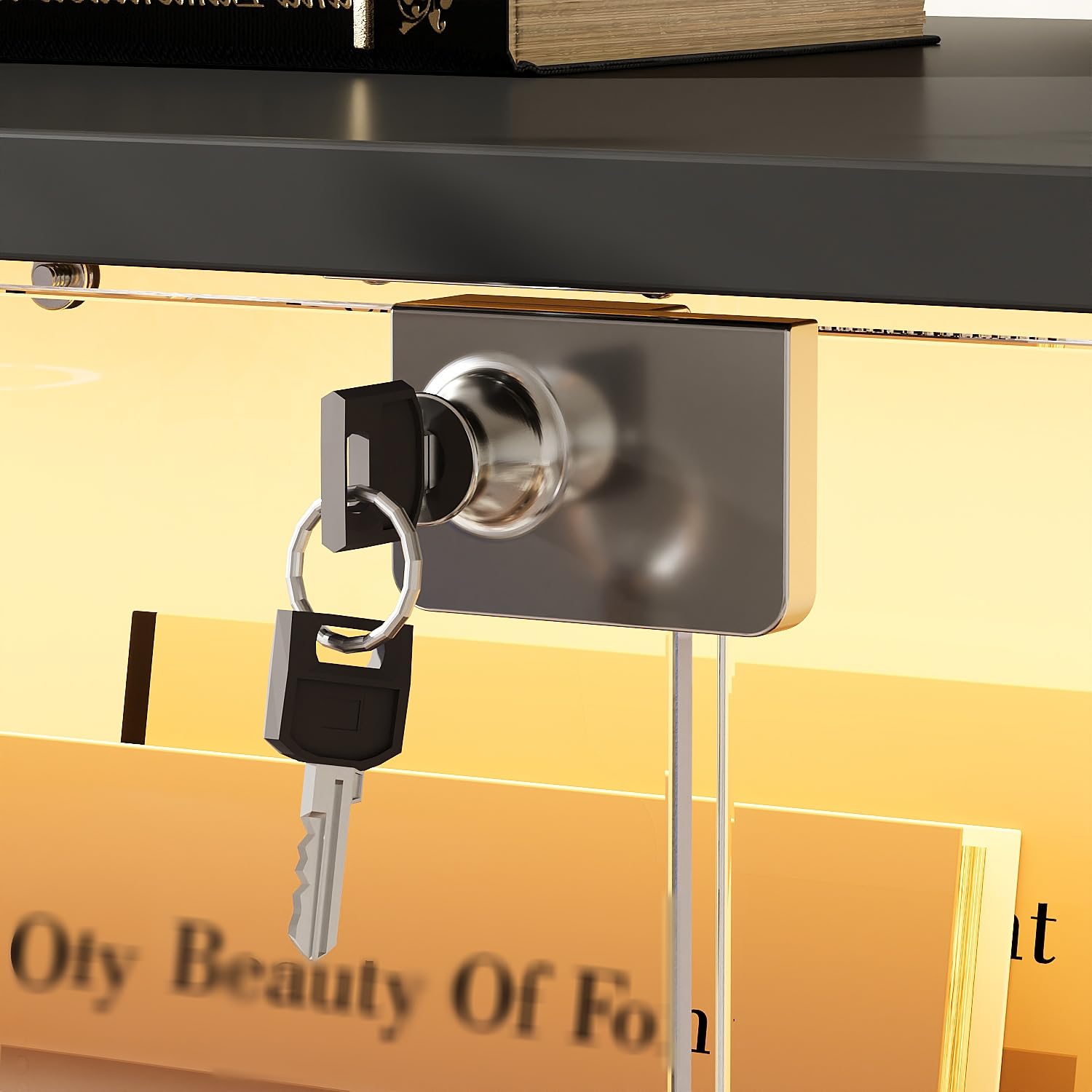 This modern glass display cabinet combines elegant design with practical functionality. Featuring tempered glass doors and shelves, this curio cabinet provides a sophisticated way to showcase your collectibles, dinnerware, or decorative items while keeping them protected.