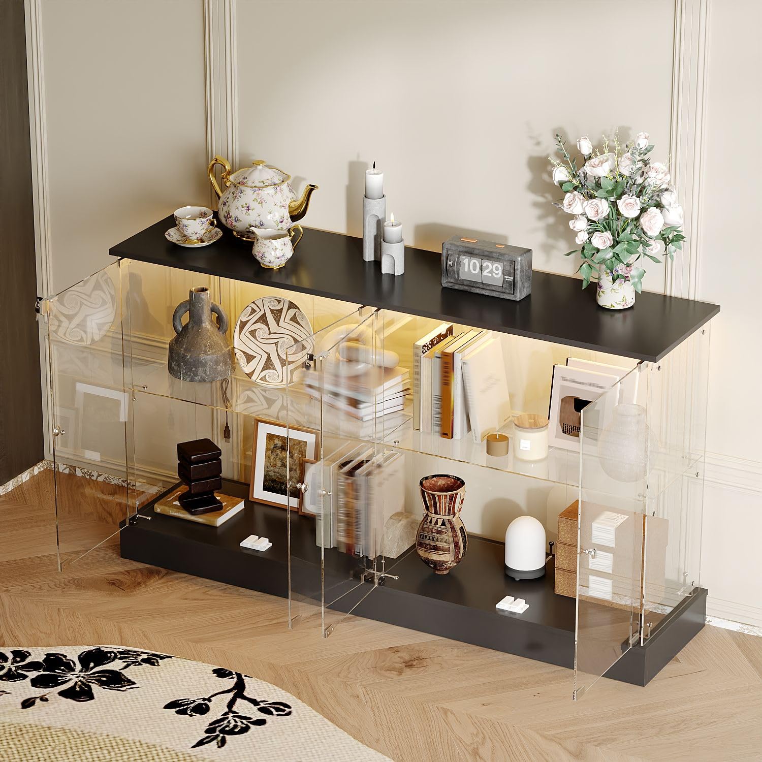 The adjustable LED lighting system illuminates your displayed items beautifully, creating an eye-catching focal point in any room. The black finish adds a contemporary touch that complements various interior styles, from modern to transitional.