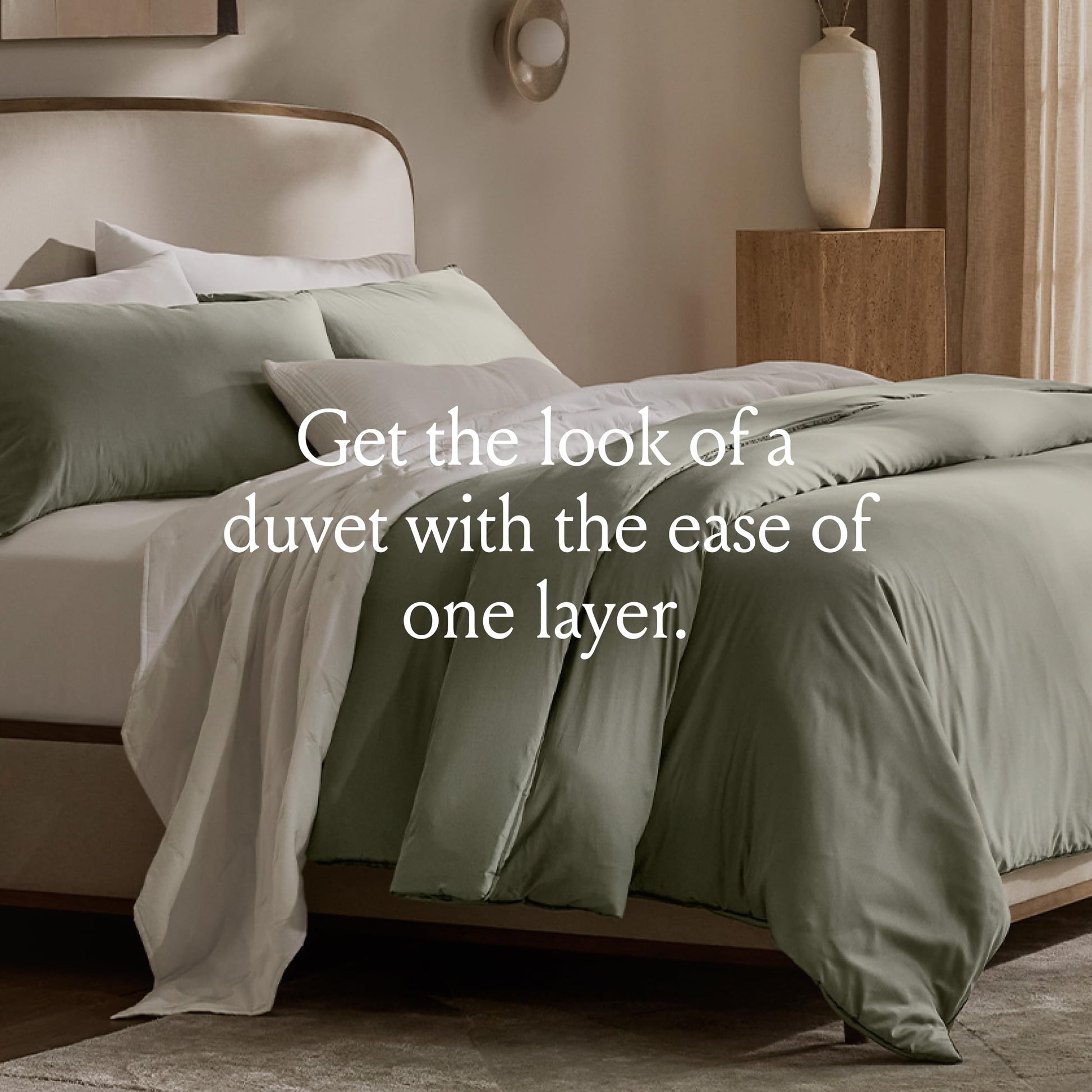 Experience the perfect blend of luxury and comfort with this all-season comforter set. Crafted from premium 100% organic cotton with a hypoallergenic recycled polyester fill, this bedding offers the sophisticated look of a duvet with the convenience of a single layer.