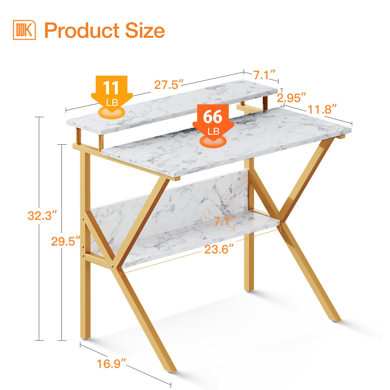 Compact computer desk designed for small spaces, featuring integrated storage shelves and a built-in monitor stand. Perfect for bedrooms, dorms, apartments, and home offices where space is limited.