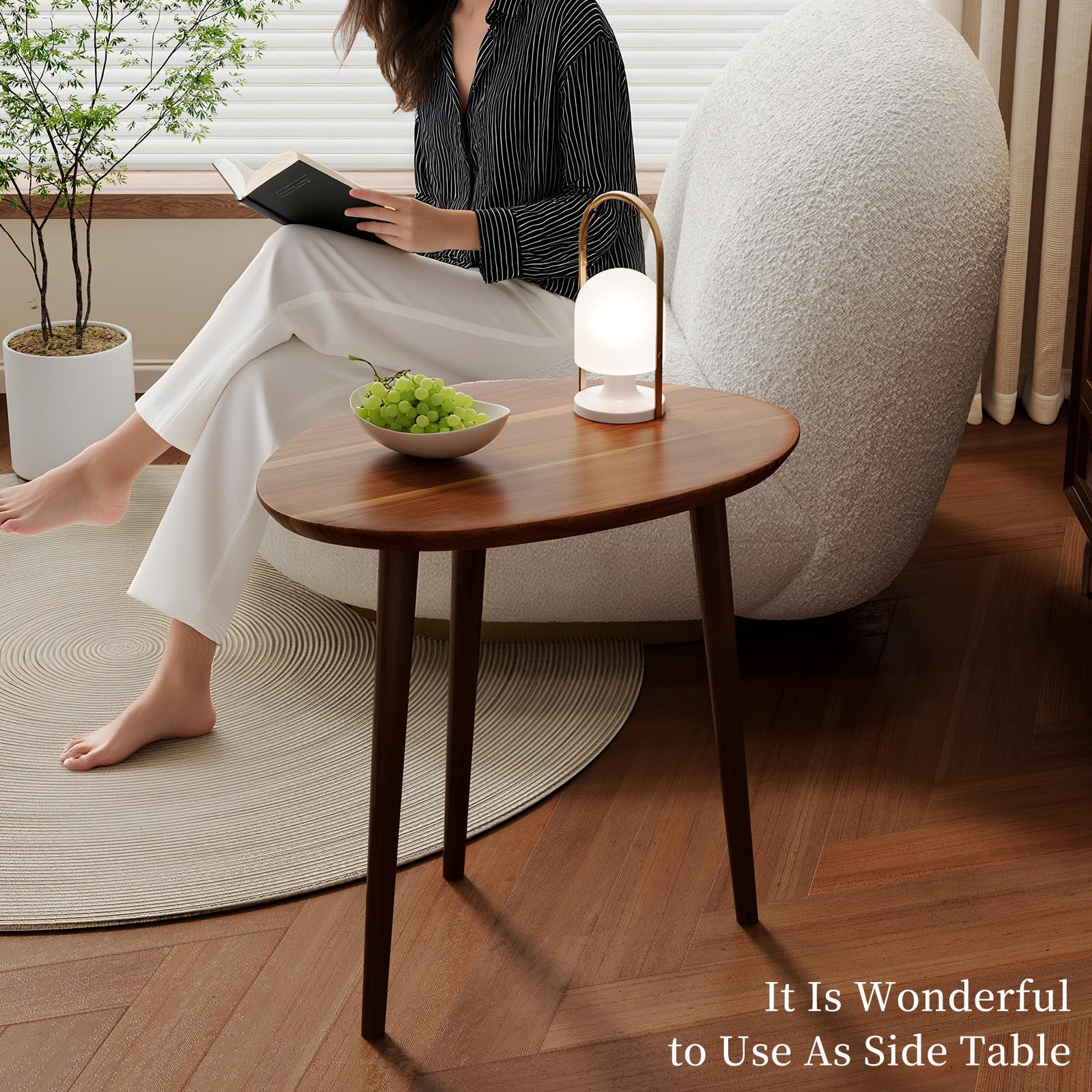 This elegant nesting coffee table set combines functionality with mid-century modern design. Crafted with premium acacia wood tabletops and a minimalist walnut finish, these oval tables are perfect for living rooms, small spaces, and offices.