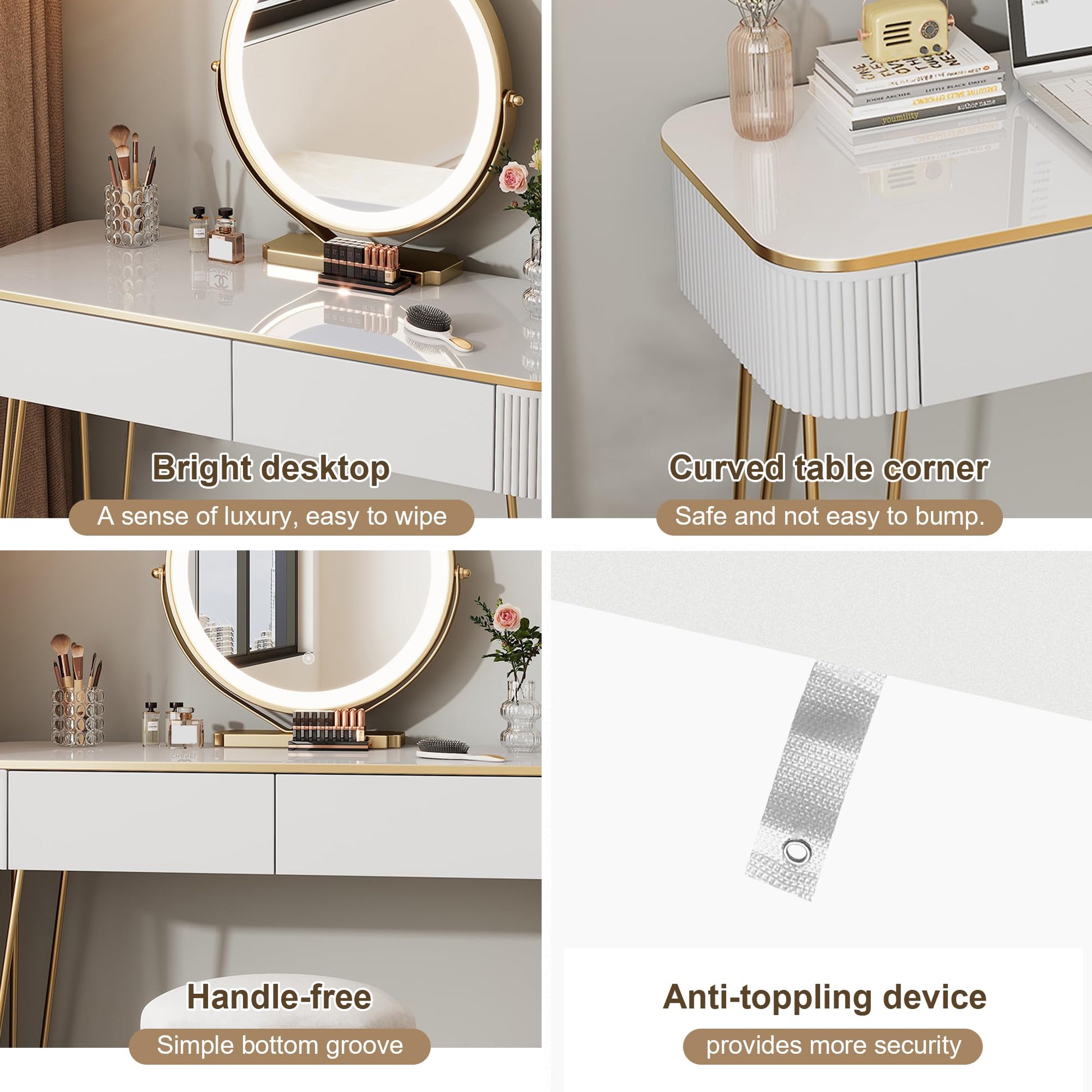 This vanity desk is designed for women who appreciate both style and practicality. Whether you're getting ready for work, a special event, or simply enjoying your skincare routine, this makeup table provides the perfect dedicated space. The compact footprint makes it an excellent choice for apartments, dorm rooms, or any bedroom where space is at a premium.