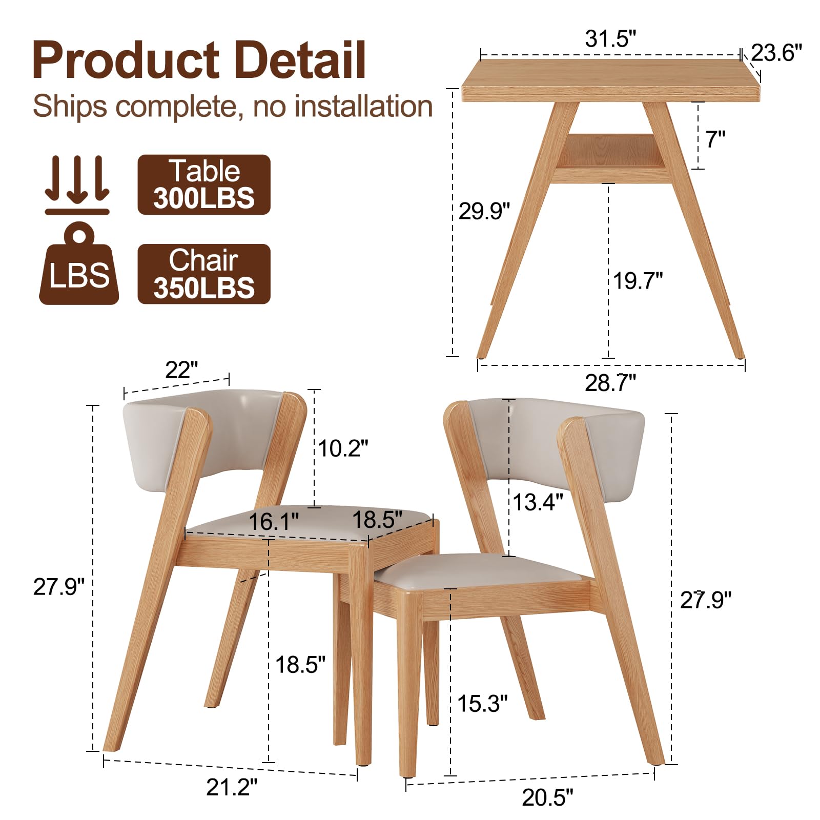 Transform your dining space with this elegant 3-piece bistro dining set crafted from premium solid rubberwood. Perfect for small spaces, this compact yet functional set features a natural wood finish that complements any decor style.