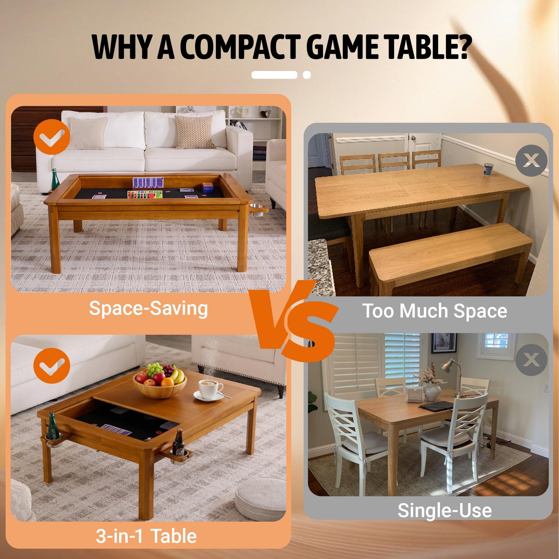 - 3-in-1 design: coffee table, gaming table, and dining table