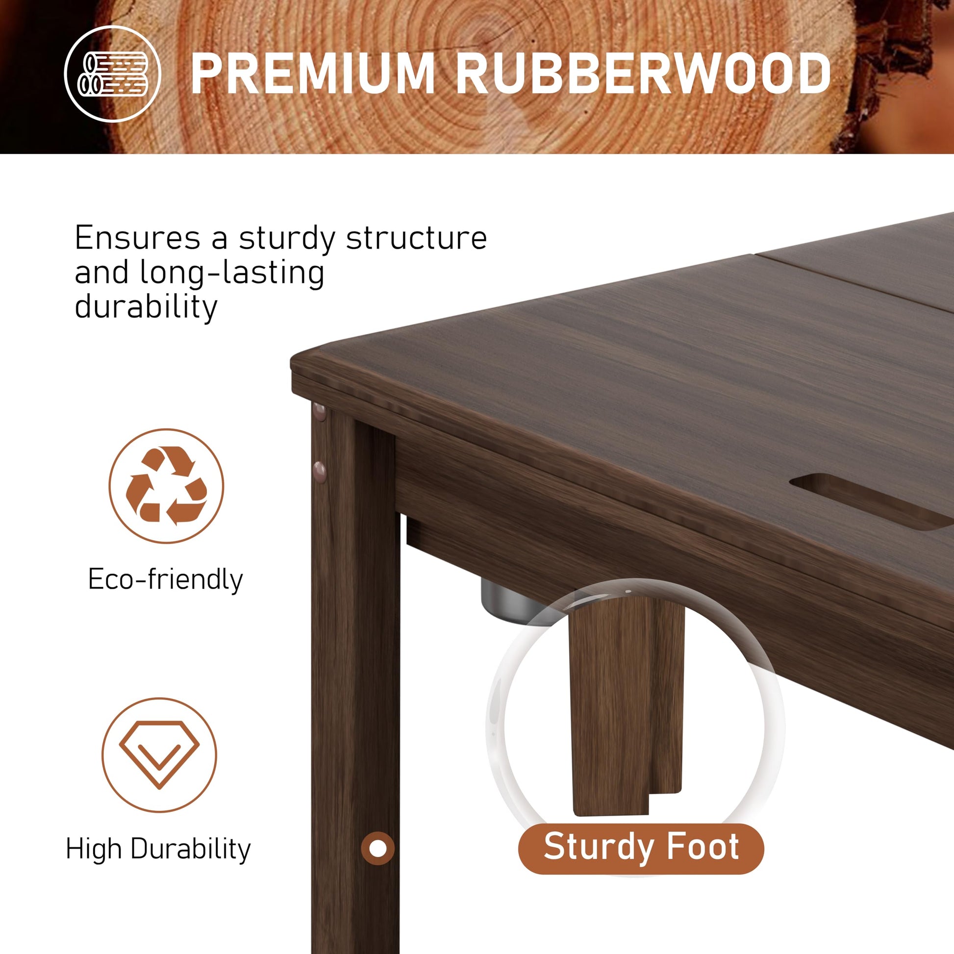 - Crafted from high-quality rubberwood for durability and eco-friendliness