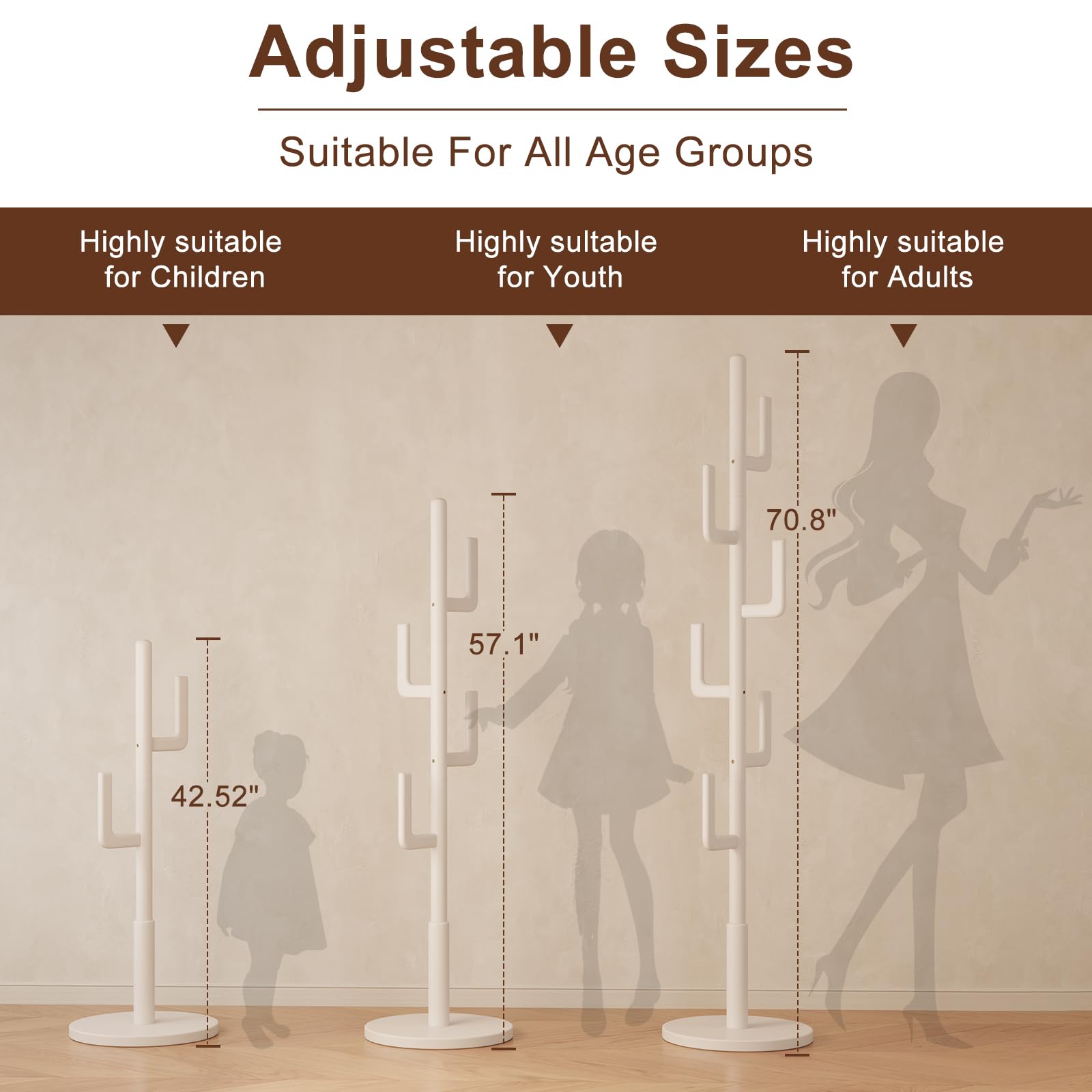 Crafted from 100% FAS rubberwood, this freestanding coat rack combines modern cactus-inspired design with exceptional functionality. The height-adjustable design offers three settings to accommodate coats, bags, ties, and accessories for every family member.