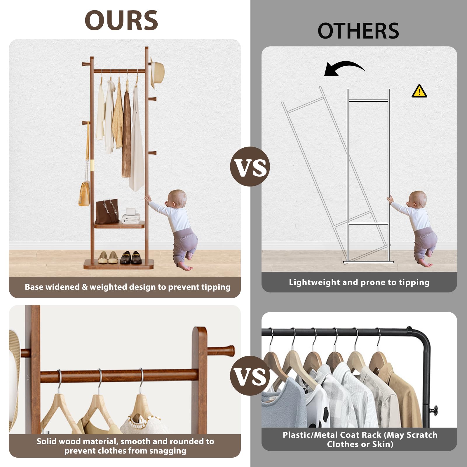 Upgrade your home organization with this elegant freestanding coat rack featuring solid wood construction and multi-functional storage design. Perfect for entryways, bedrooms, or offices.