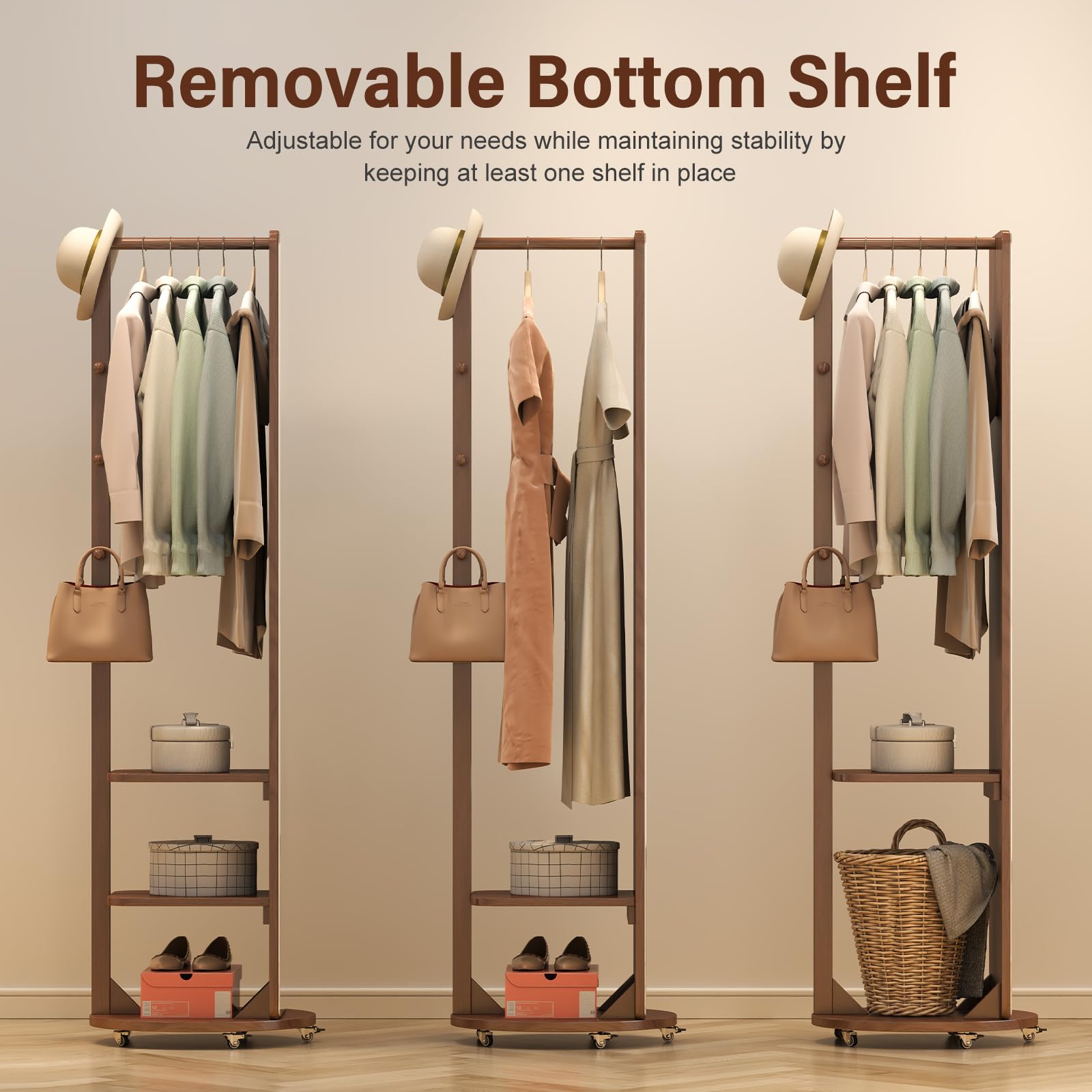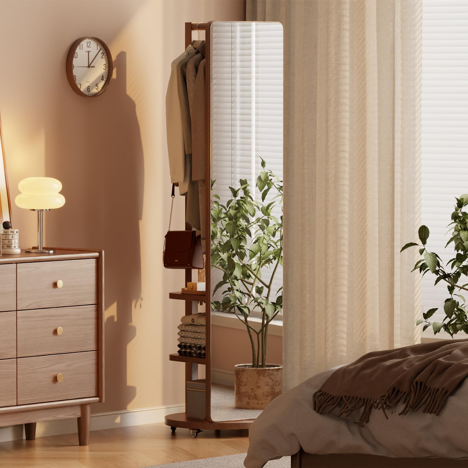 Solid Wood Full Length Mirror Coat Rack with Wheels
