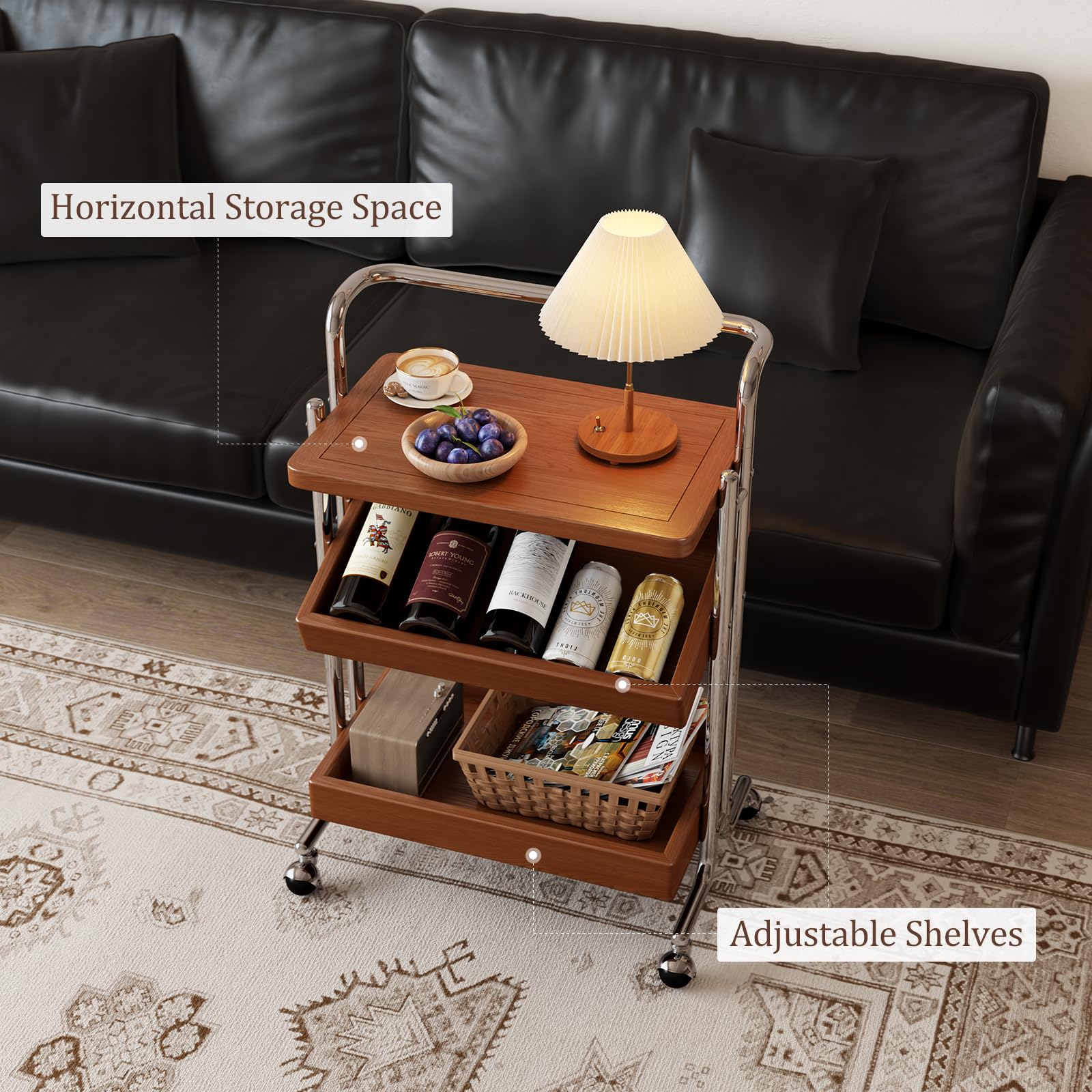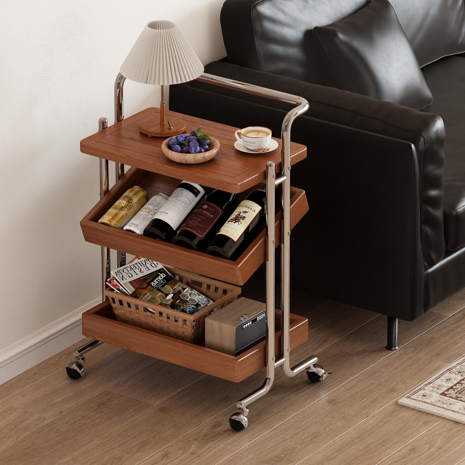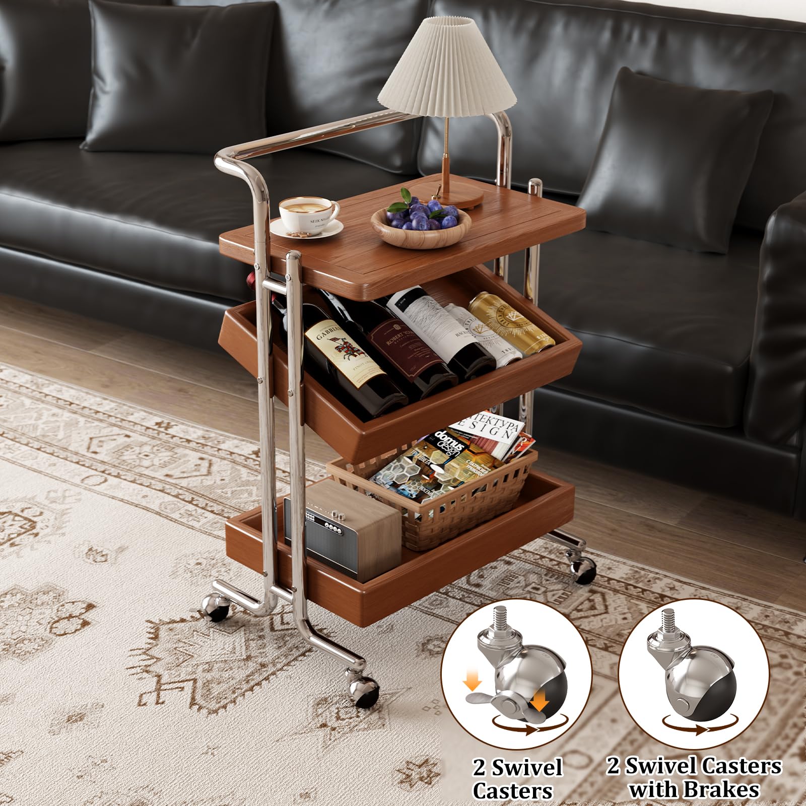 Perfect for use as a bedside storage table, bar serving cart, or living room side table, this narrow cart fits seamlessly into tight spaces. The sturdy construction supports your essentials while the elegant wood finish complements any décor style.
