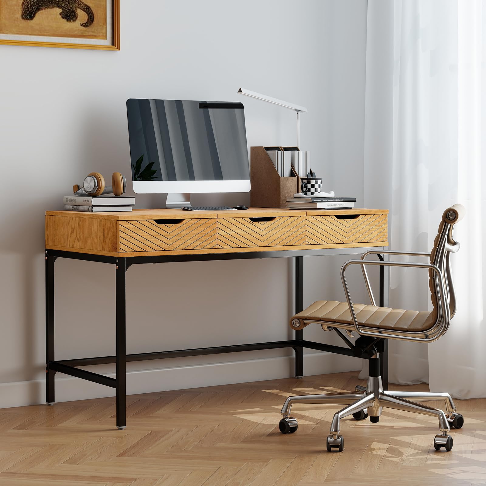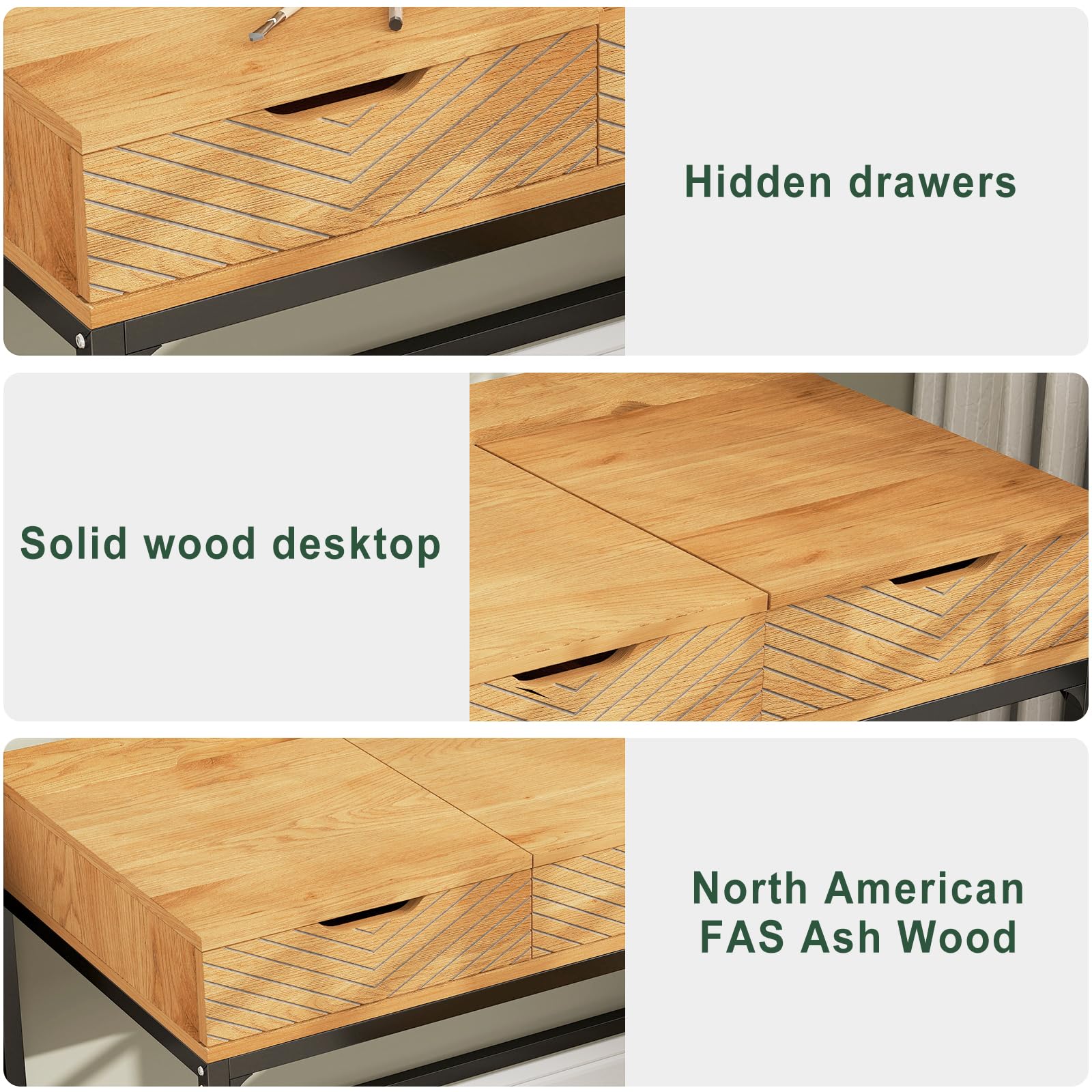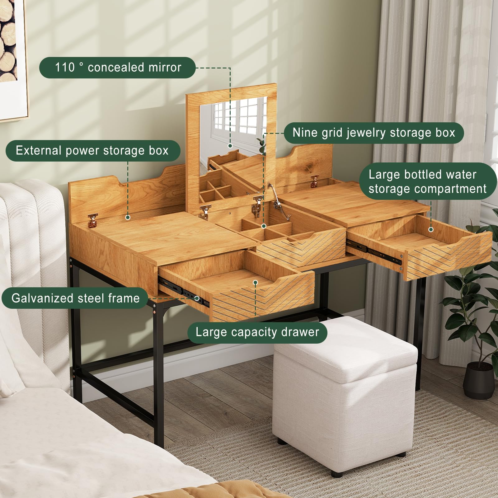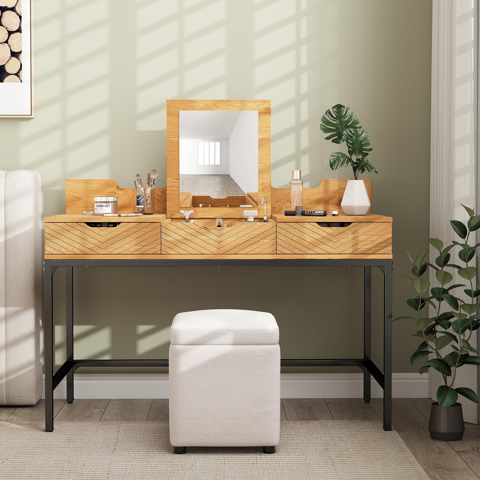 Solid Wood Vanity Desk with Flip Top Mirror and 3 Drawers