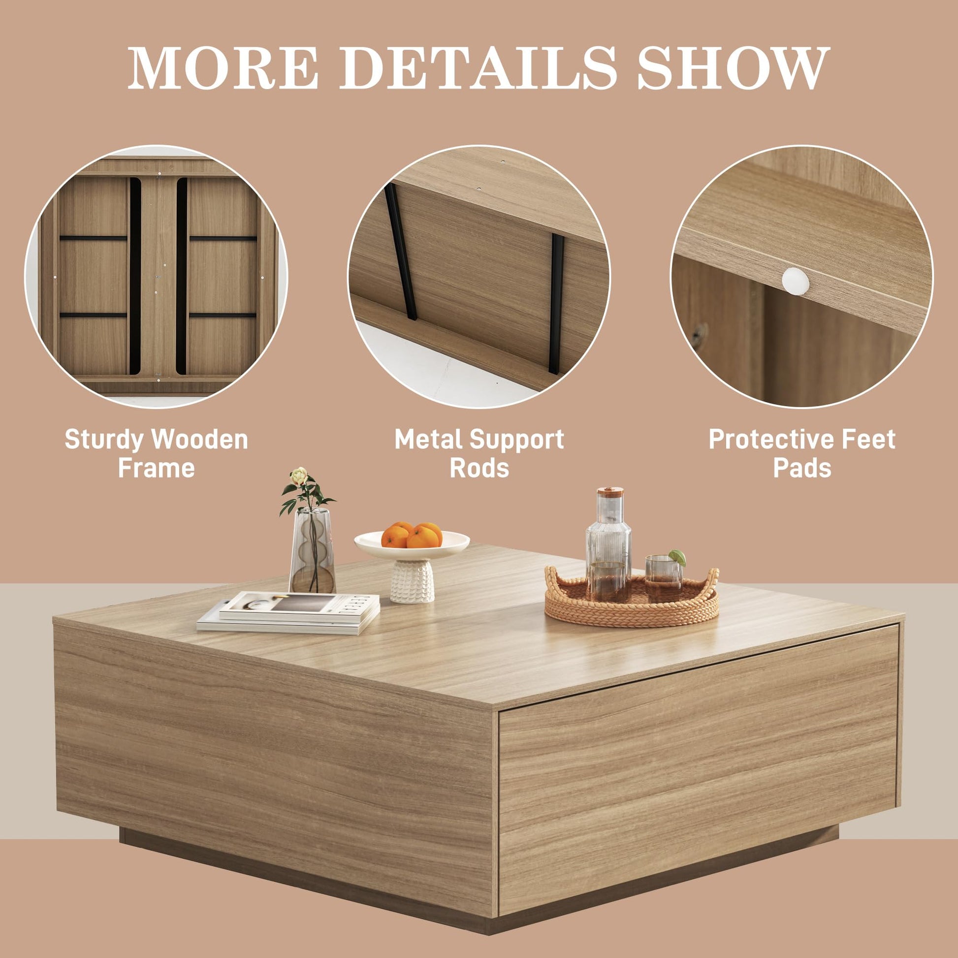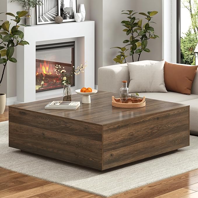 Square Coffee Table with Storage and 2 Drawers