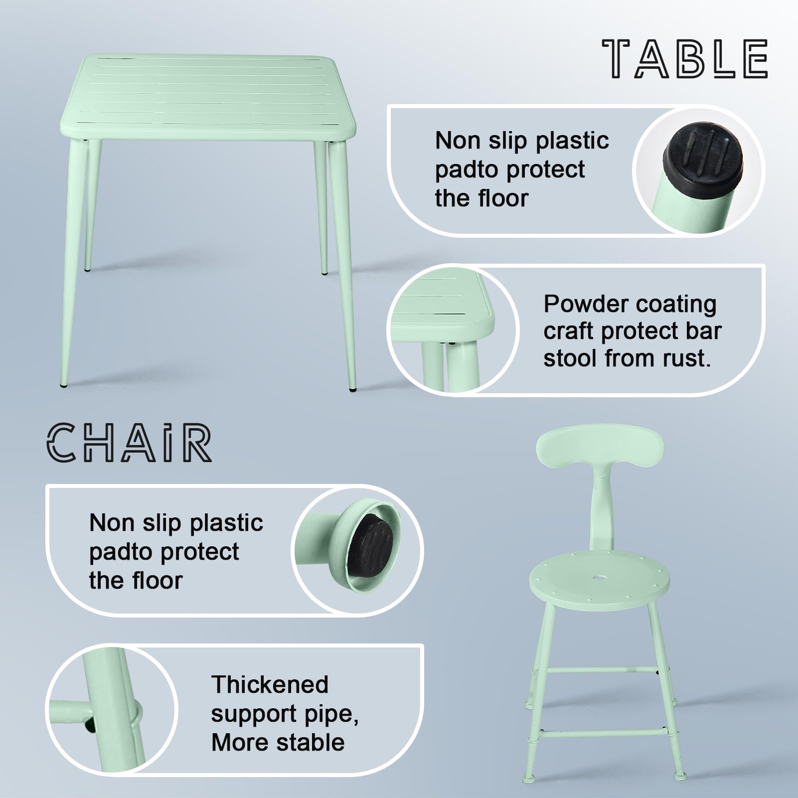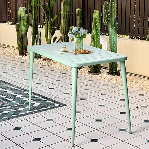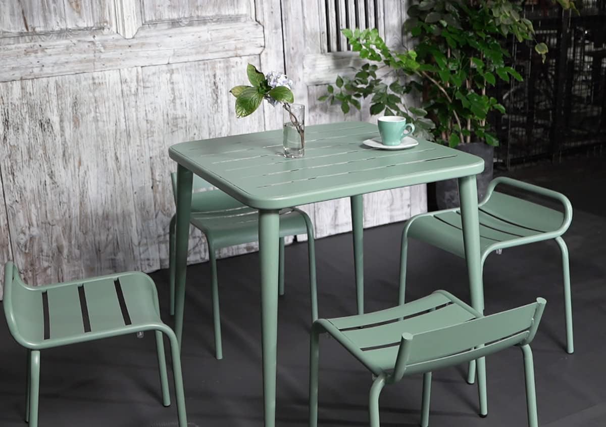 Built with a robust metal steel frame and finished with a fresh green powder coating, this dining table is engineered to withstand various weather conditions. The anti-rust coating and solid construction ensure years of reliable service life with minimal maintenance.