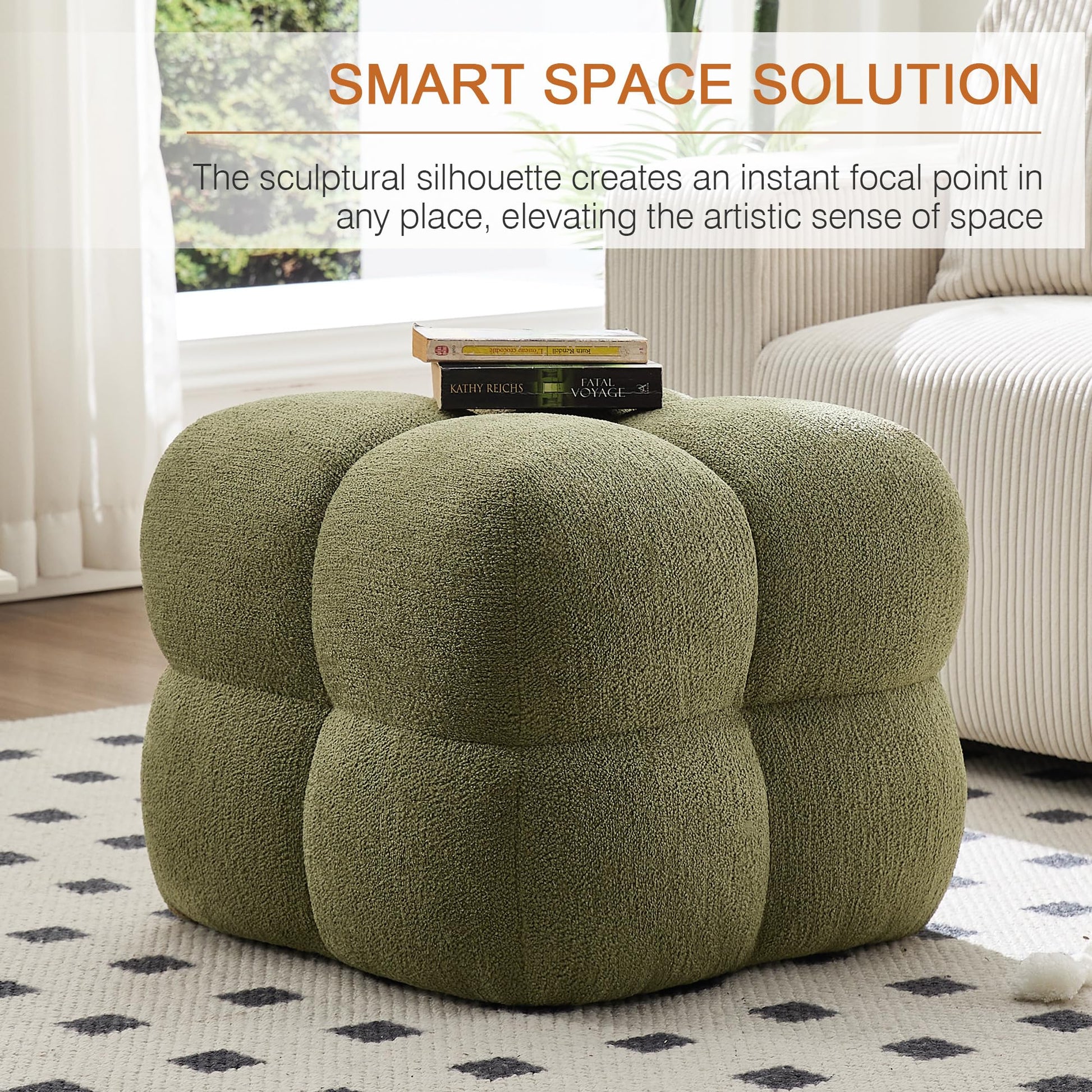 The quality goes deeper than looks. Built with a hardwood frame, high-density resilience foam filling, and expert sewing techniques, this ottoman delivers exceptional comfort while retaining its shape and durability for years to come. The poofy boucle fabric makes it a standout accent piece for any room.