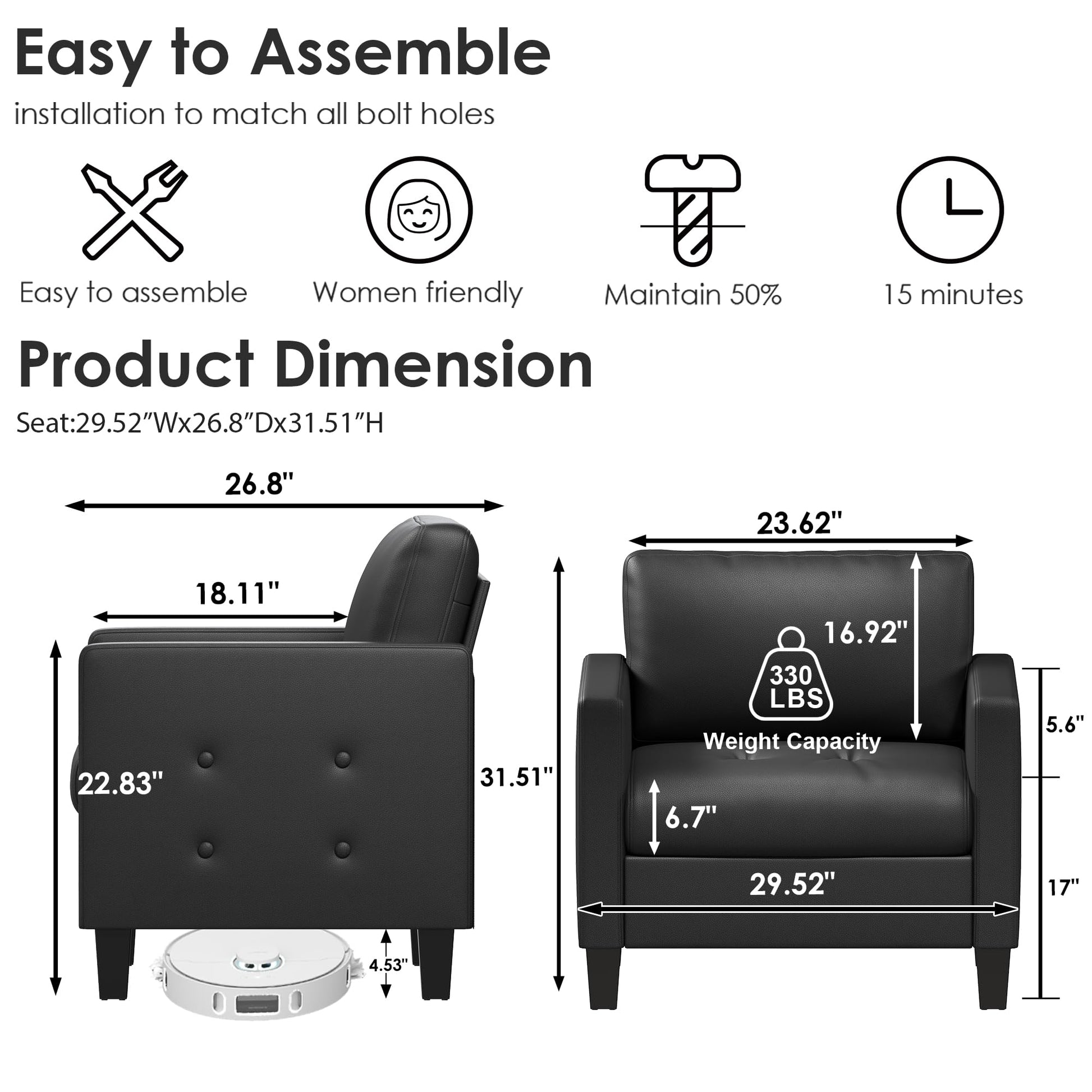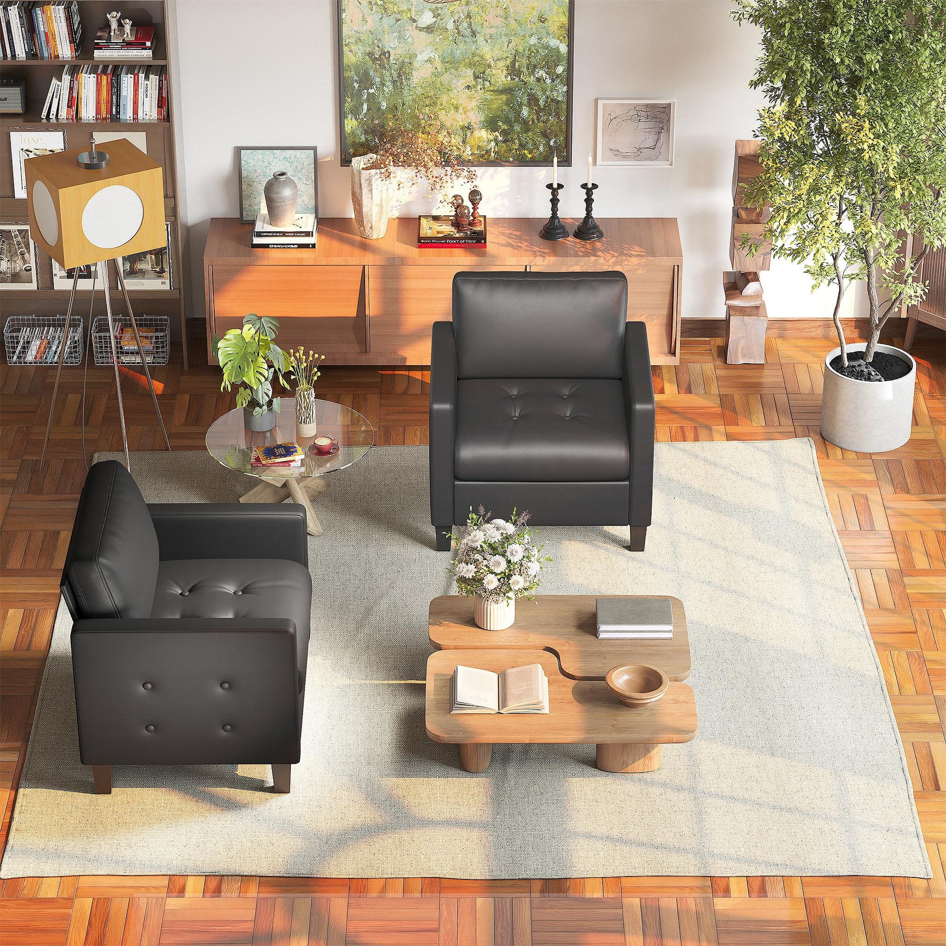 - Timeless Black Leather Elegance: Want to bring a refined touch to your space? This black faux leather accent chair combines a classic silhouette with modern button-tufted details for a look that never goes out of style. Whether placed in your office reception area to welcome clients, in your living room for extra seating, or in your bedroom as a cozy reading chair, it blends seamlessly with any décor.