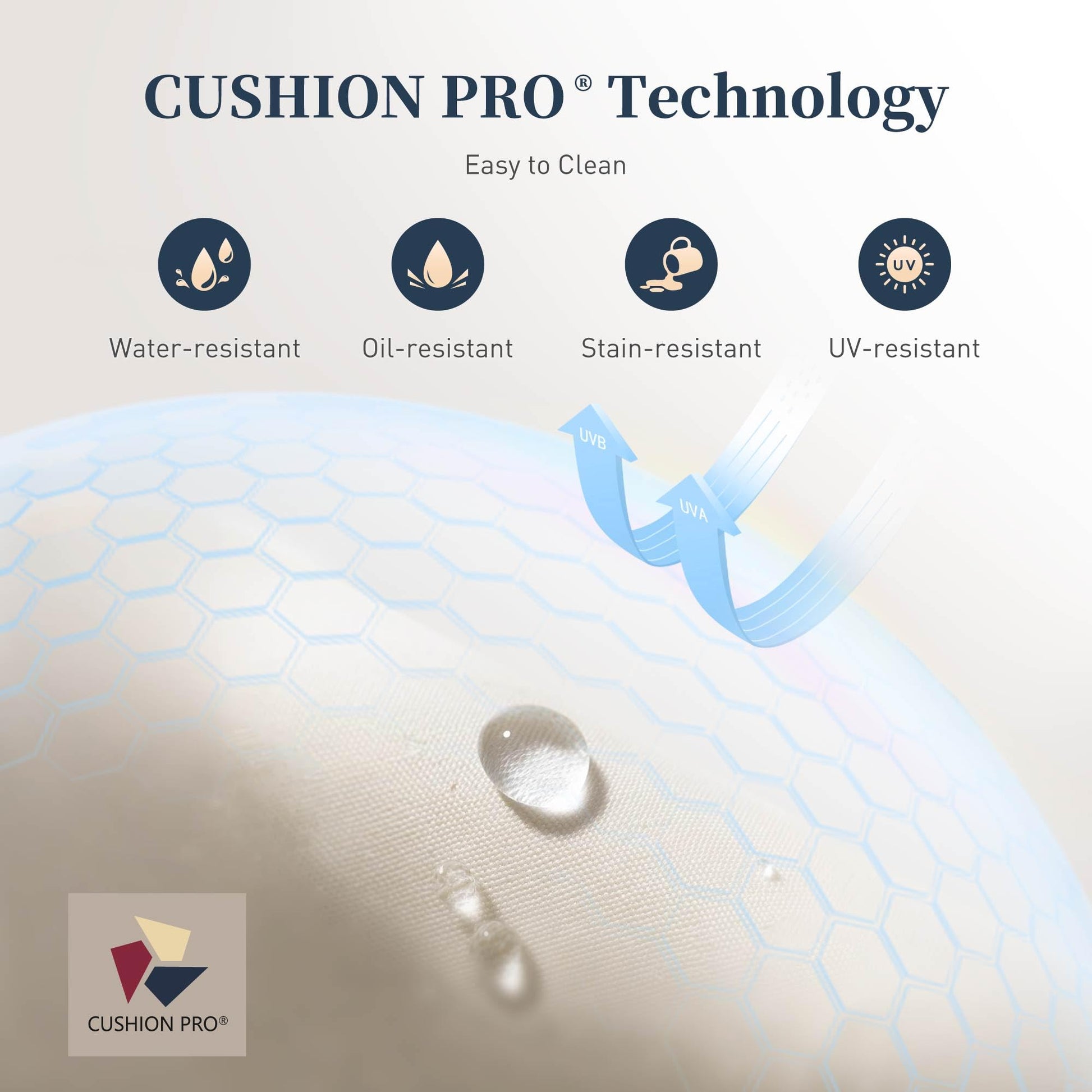 - ALL-WEATHER USE: The cushion covers are made with CUSHION PRO technology, which is stain, water and oil resistant and easy to maintain. And the L-shaped zipper design make it easily removable for cleaning. The chair frame is machined from high performance powder coated and E-coated steel. It provides long-term outdoor protection against rust, scratches and rain