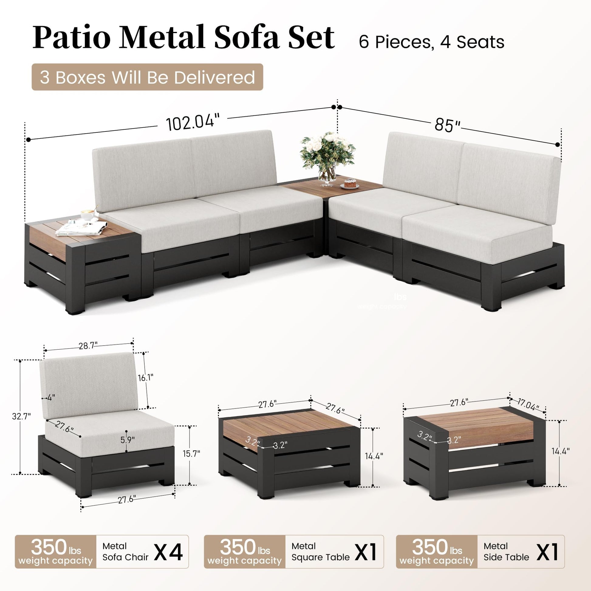SUNSHINE VALLEY Upgraded 6-Piece Metal Patio Furniture Set with 5.9" Thick Cushion, Outdoor Sectional Furniture Conversation Set with Coffee Table & Side Table, Patio Modular L Shape Sofa for Backyard