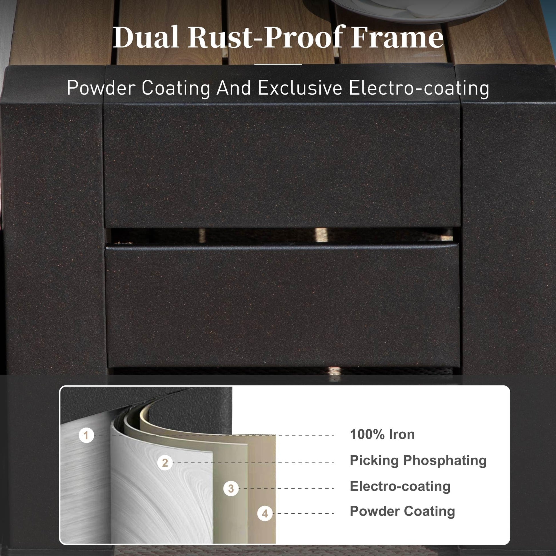 - 【Double Rust-Resistant, Thick & Sturdy Frame】This outdoor furniture set is built to last, featuring double rust-resistant technology with powder coating and electro coating, ensuring durability in all weather conditions. The thick and sturdy frame provides stability and support, making it perfect for any outdoor environment, whether it's sunny, rainy, or windy. Enjoy stylish comfort all year round, no matter the weather