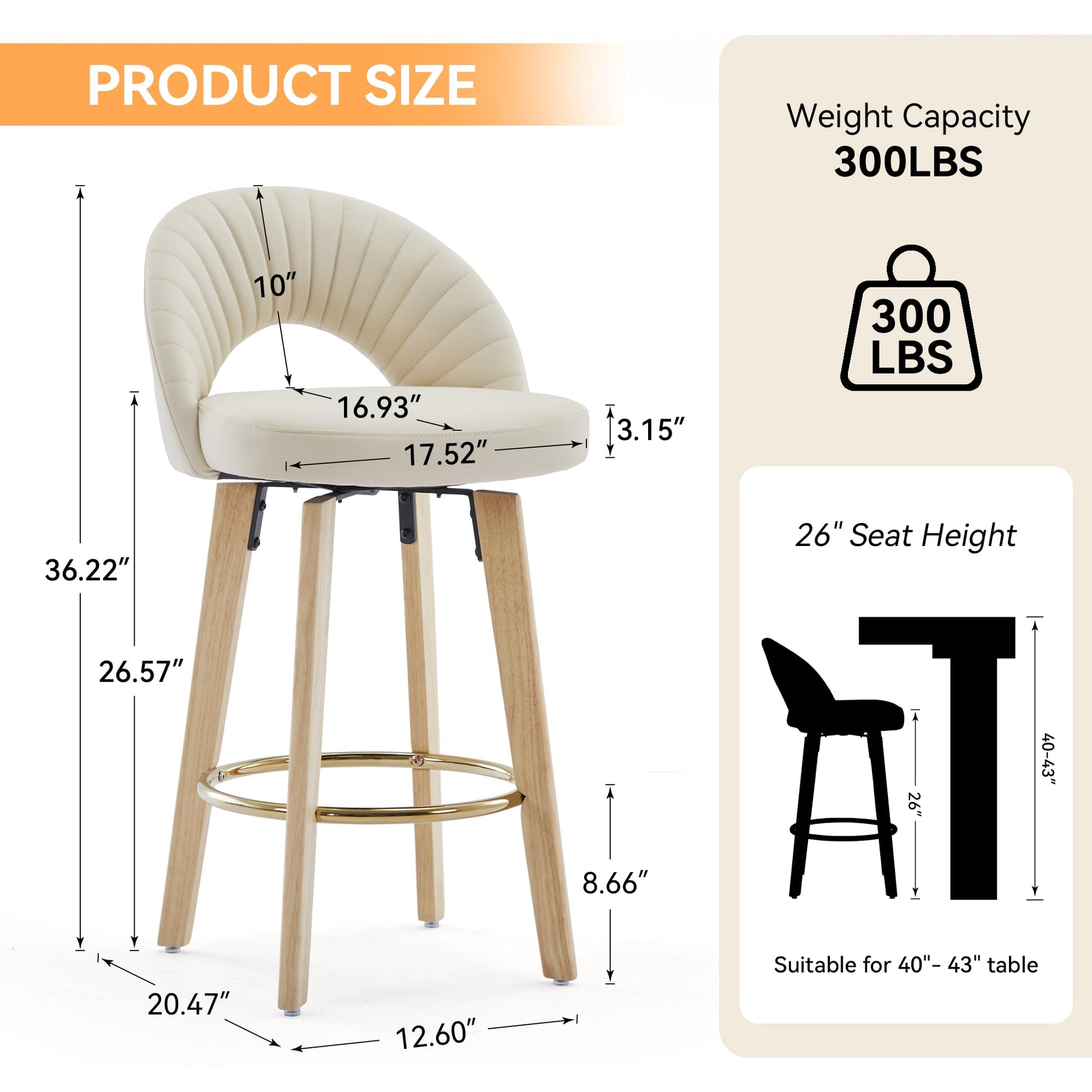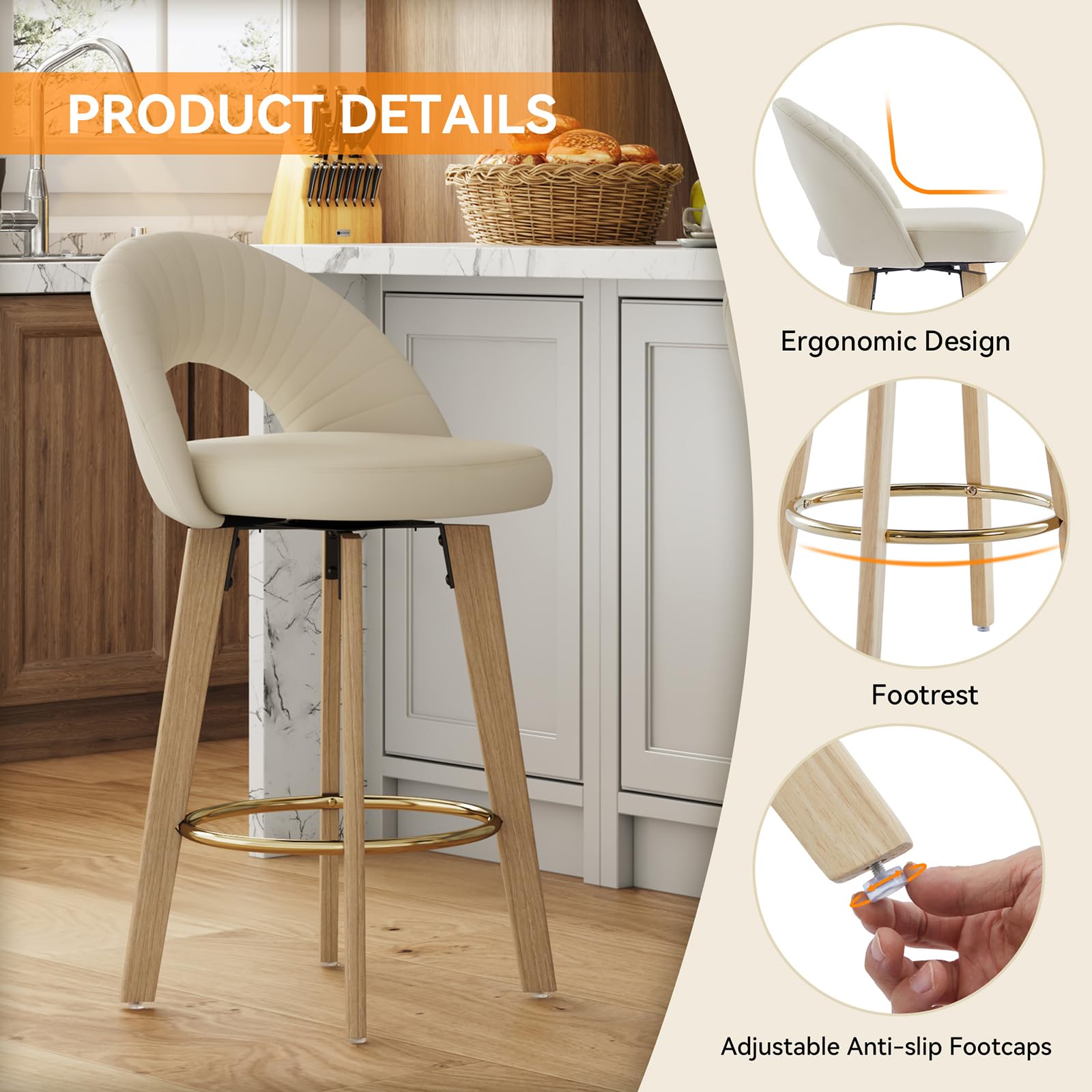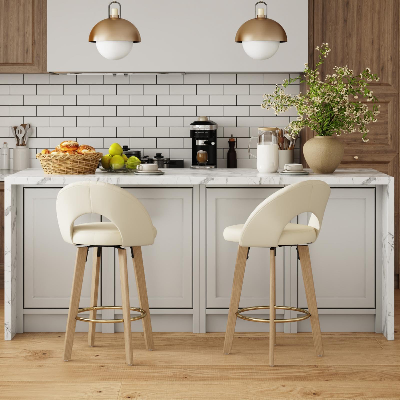 Transform your kitchen island or home bar with these elegant counter height bar stools. Featuring a sophisticated beige faux leather upholstery and distinctive bentwood legs, these swivel stools blend mid-century modern aesthetics with contemporary comfort.