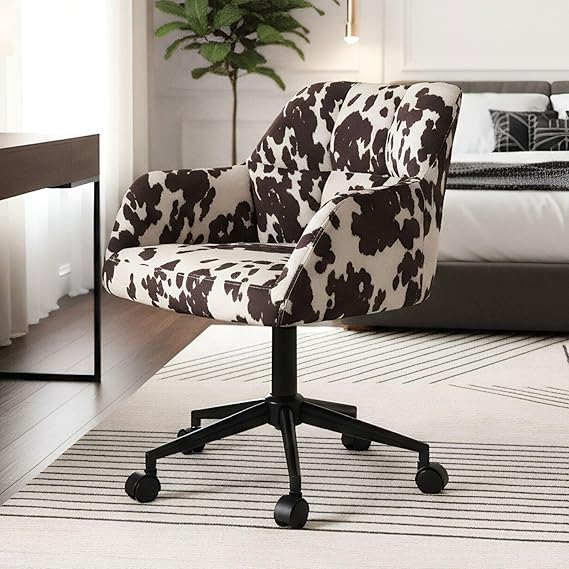 Elevate your workspace with these stylish swivel office desk chairs featuring cow print velvet upholstery. This set of 2 ergonomic chairs combines comfort and functionality with adjustable height, 360-degree swivel, and smooth-rolling wheels.
