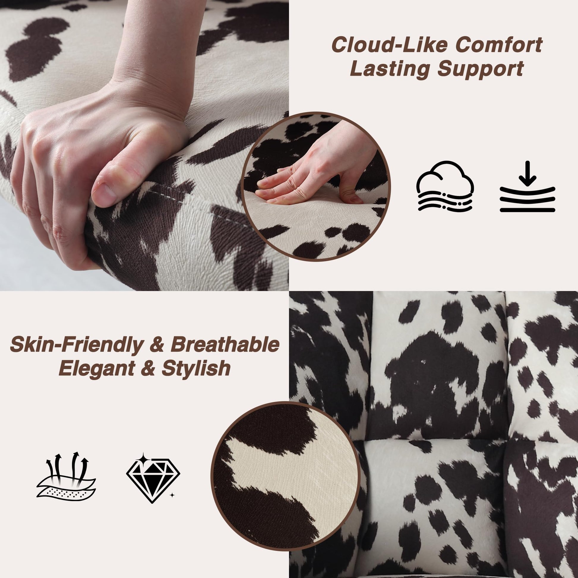 - Soft cow print velvet fabric with classic checkered well-padded mid-backrest