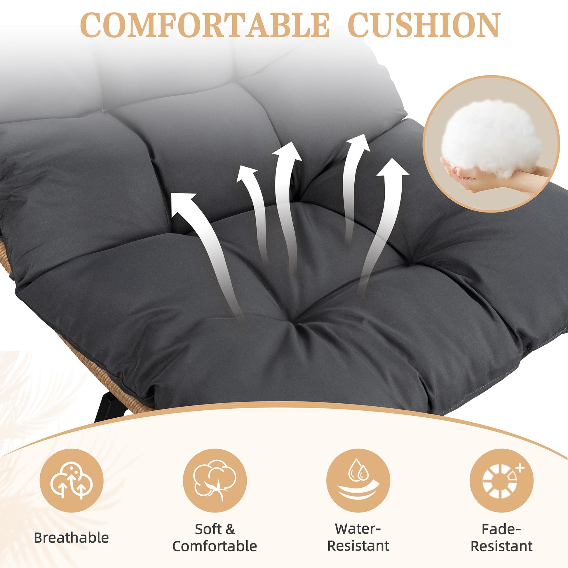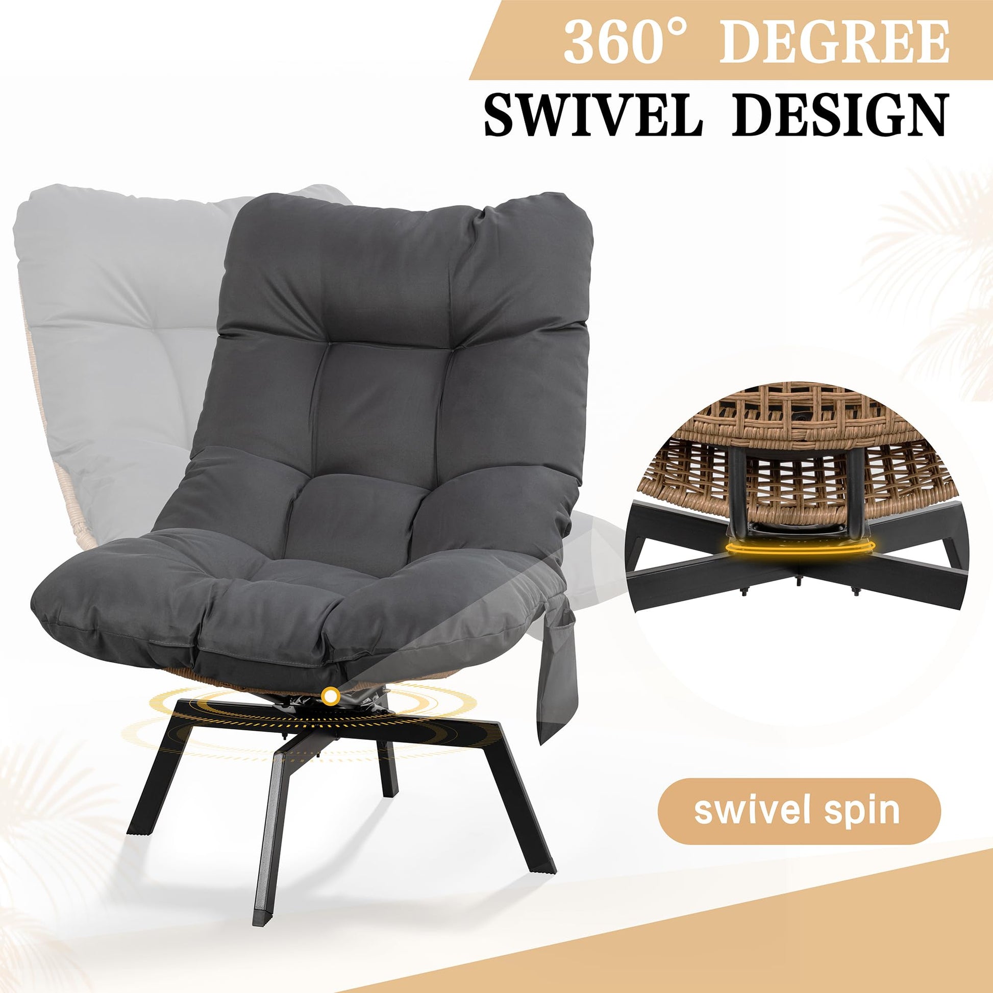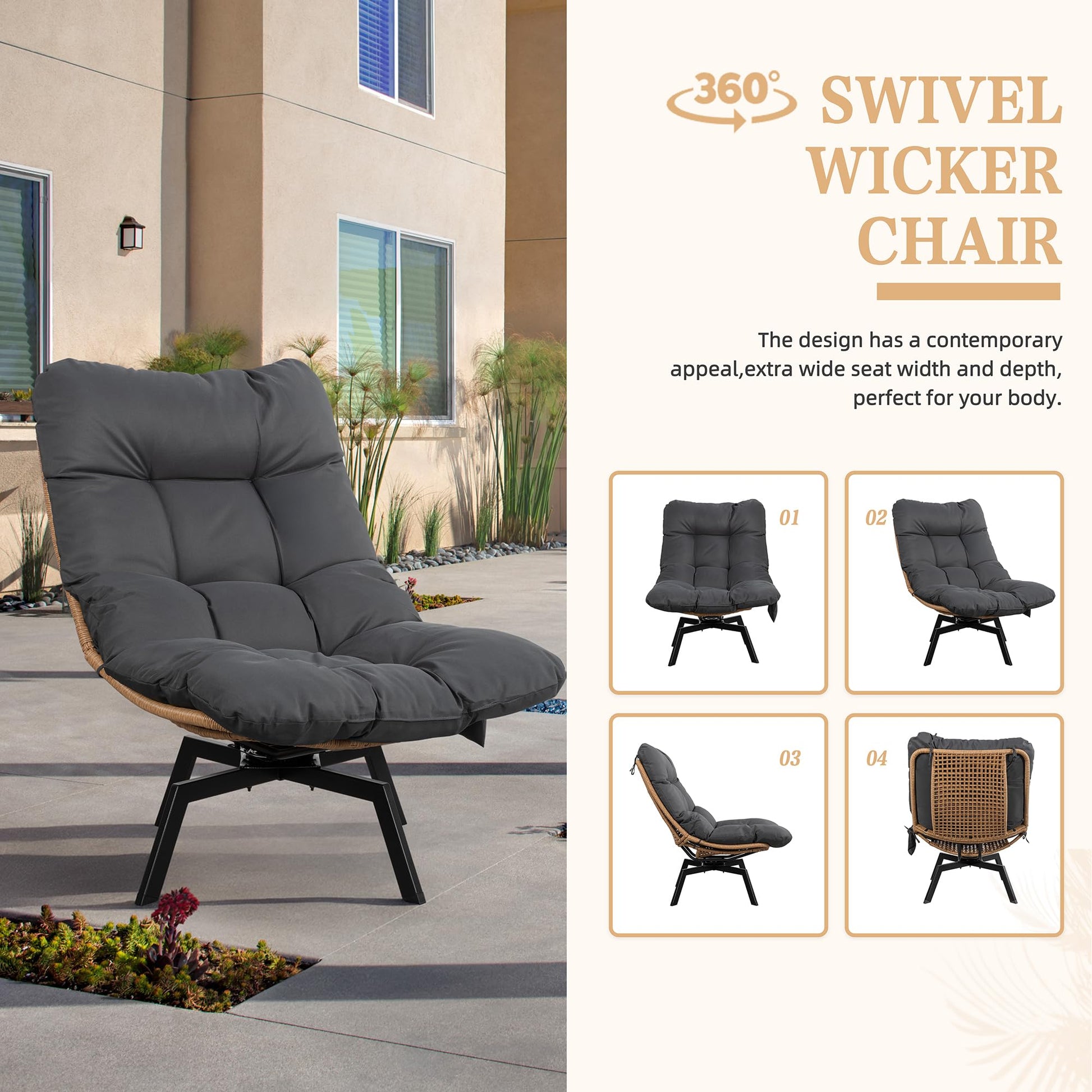 Swivel Wicker Chair with Cushion - Oversized Patio Lounge Chair
