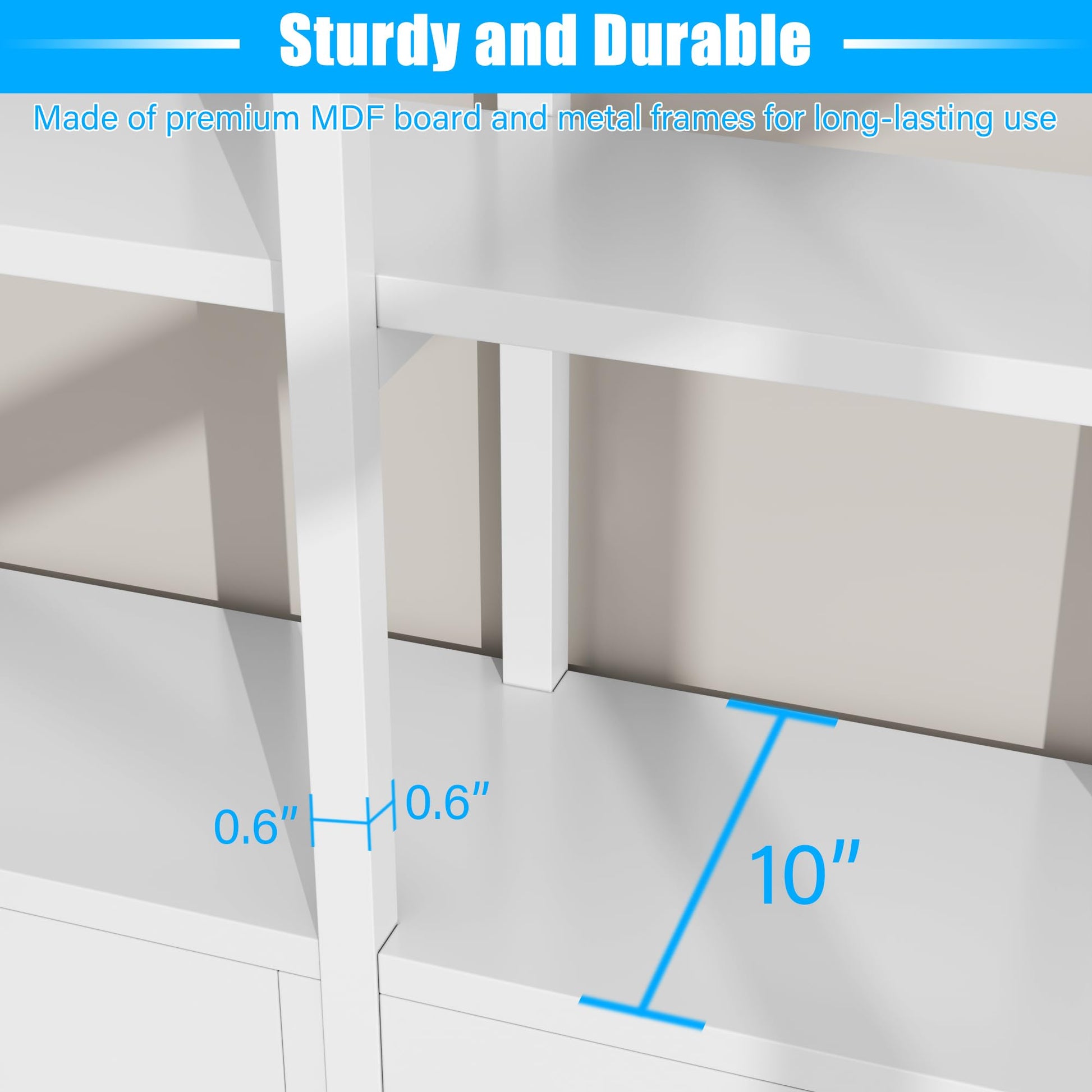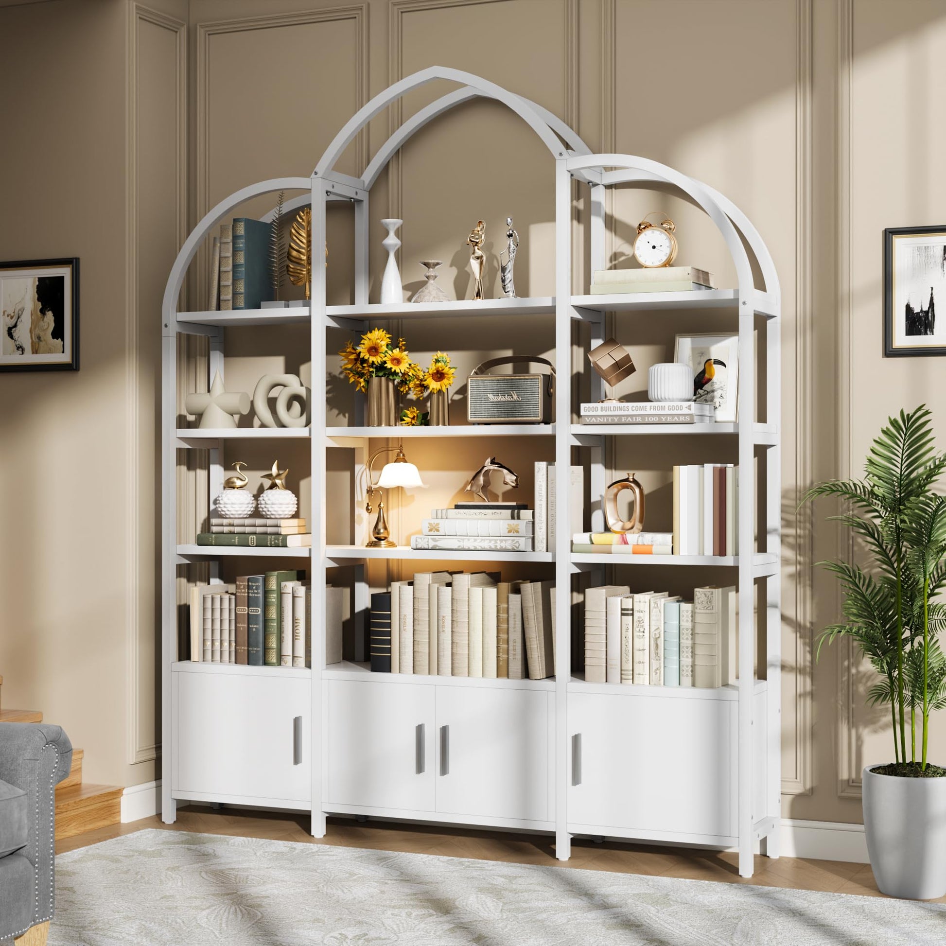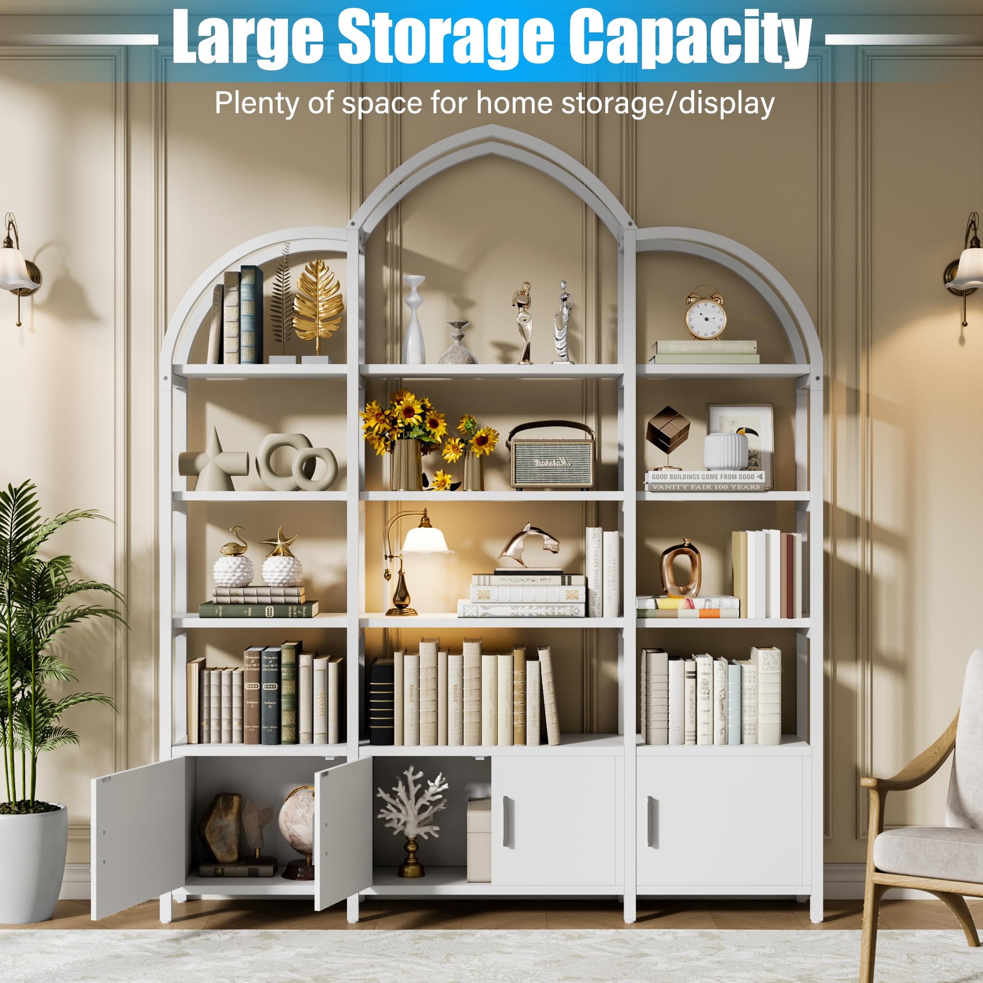 Tall Arched Bookshelf with 3 Cabinets - Triple Wide 5 Tier Industrial Etagere