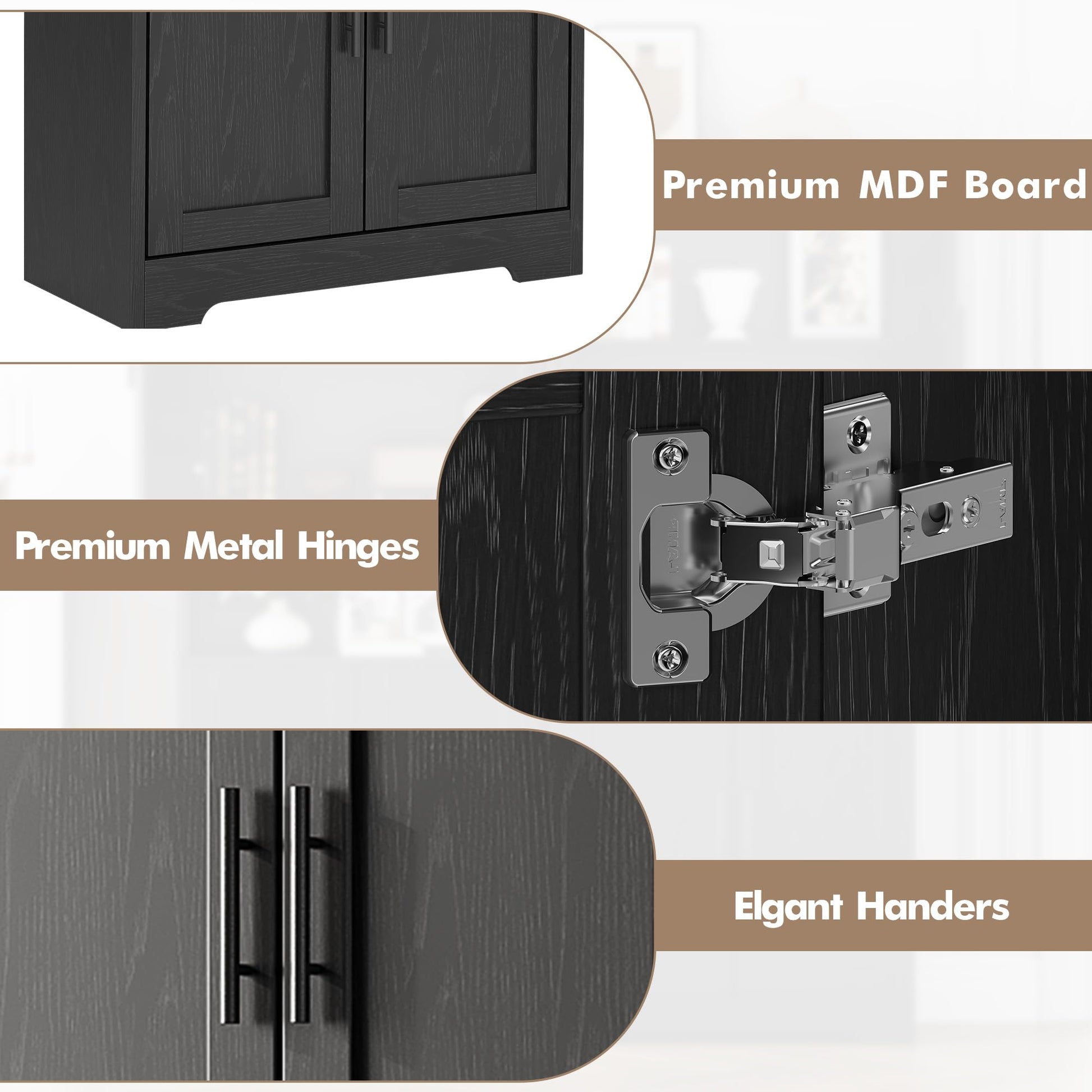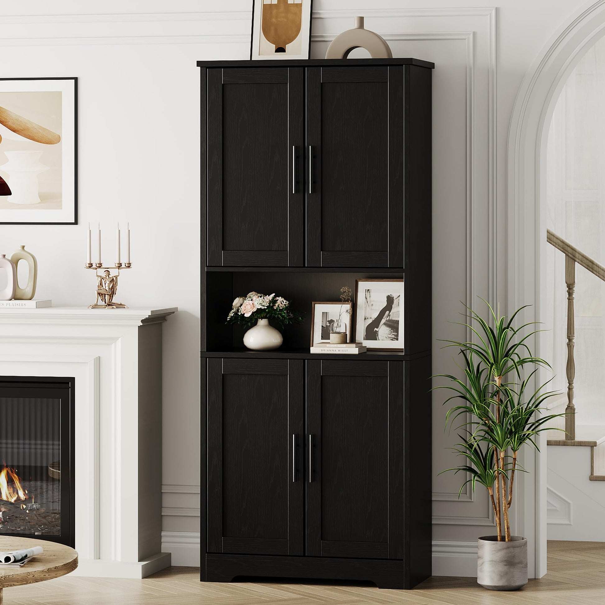 - Customizable Adjustable Shelves: Two spacious cabinets each feature 3 height-adjustable shelves, allowing you to tailor storage for items of all shapes and sizes—from tall cereal boxes to small spice jars