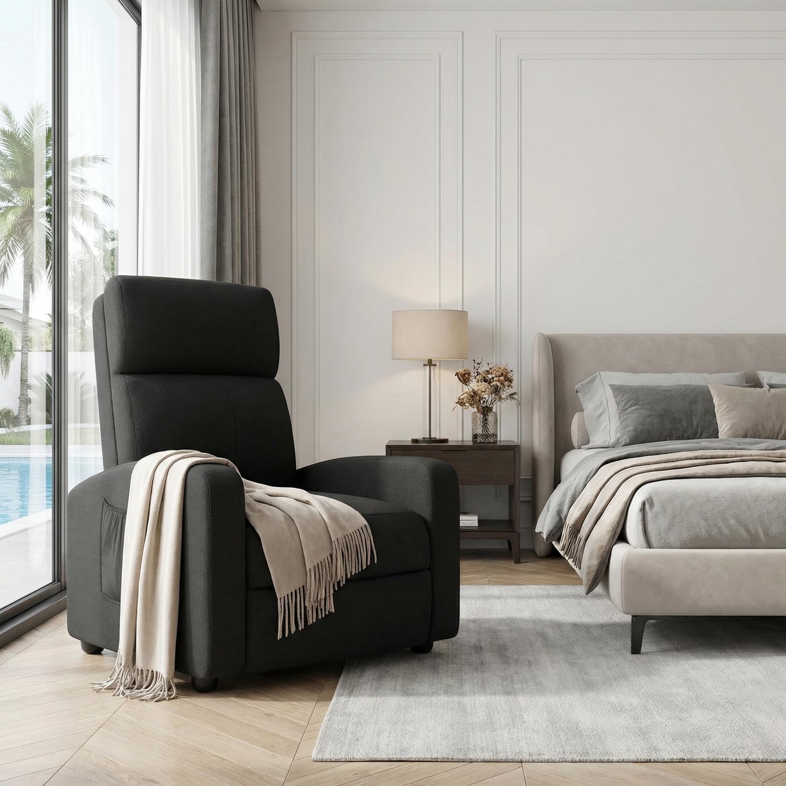 - Tool-Free Assembly & Side Pocket: Set up this recliner chair in minutes without tools. The illustrated manual guides you effortlessly. The convenient side pocket keeps remotes or phones within reach