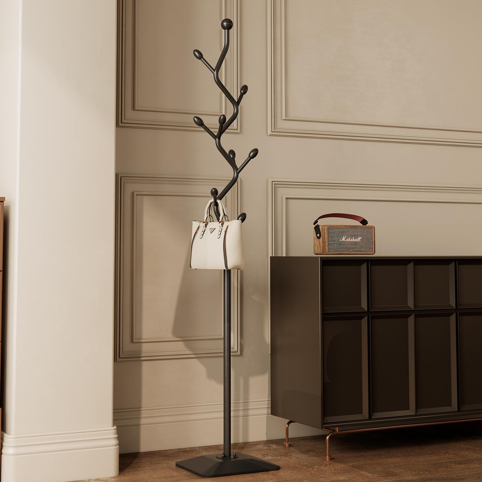 Transform your entryway with this elegant tree-shaped coat rack that combines functionality with natural-inspired design. Featuring a reinforced iron construction and weighted cast iron base, this freestanding coat hanger provides stable, reliable storage for your daily essentials.