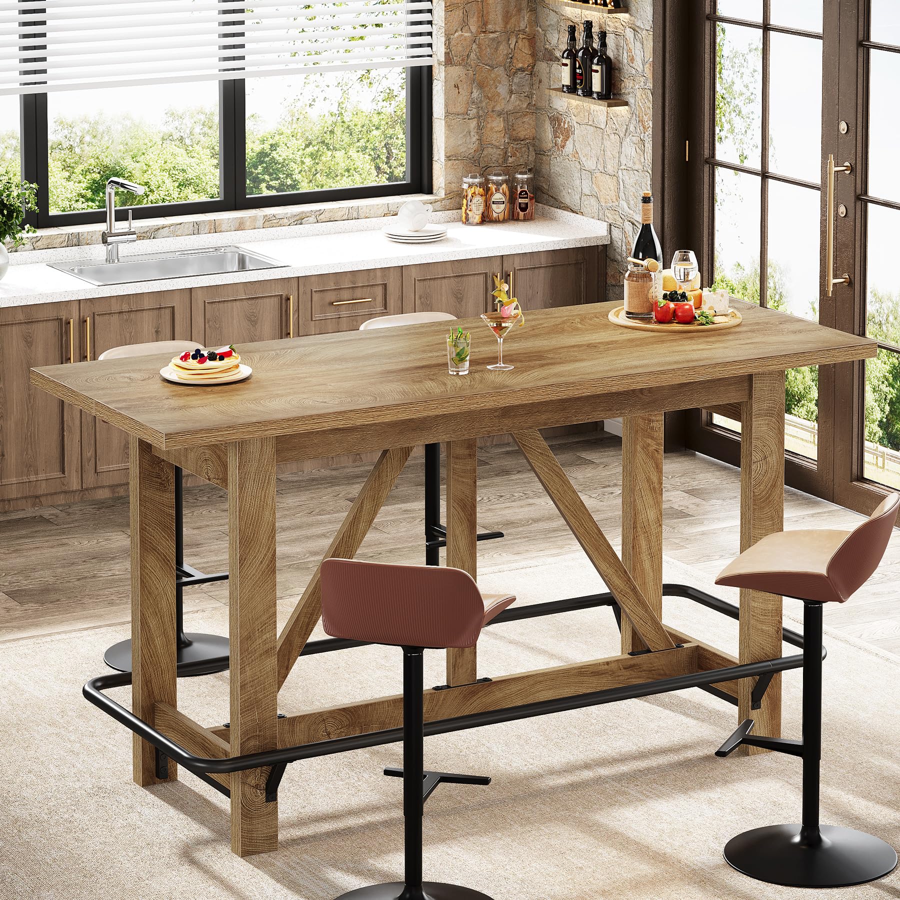 - Spacious Tabletop: With a 63" W x 23.2" D surface, the bar table comfortably hosts 4 people, making it ideal for shared moments like casual drinks, meals, and lively chats, perfect for everything from laid-back nights with friends to lively group gatherings