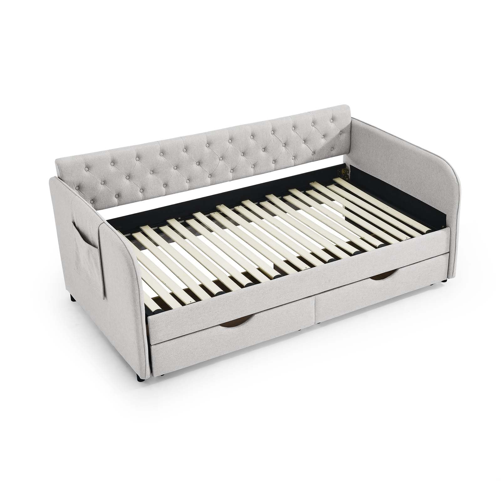 80.5" Tufted Linen Daybed with Trundle and Storage Drawer