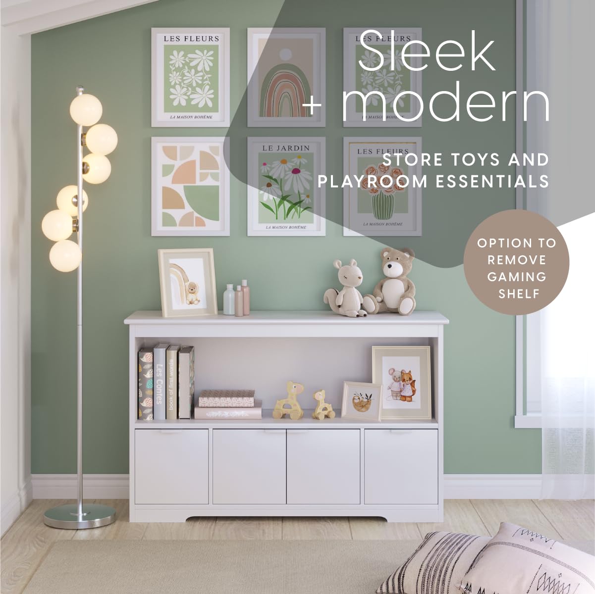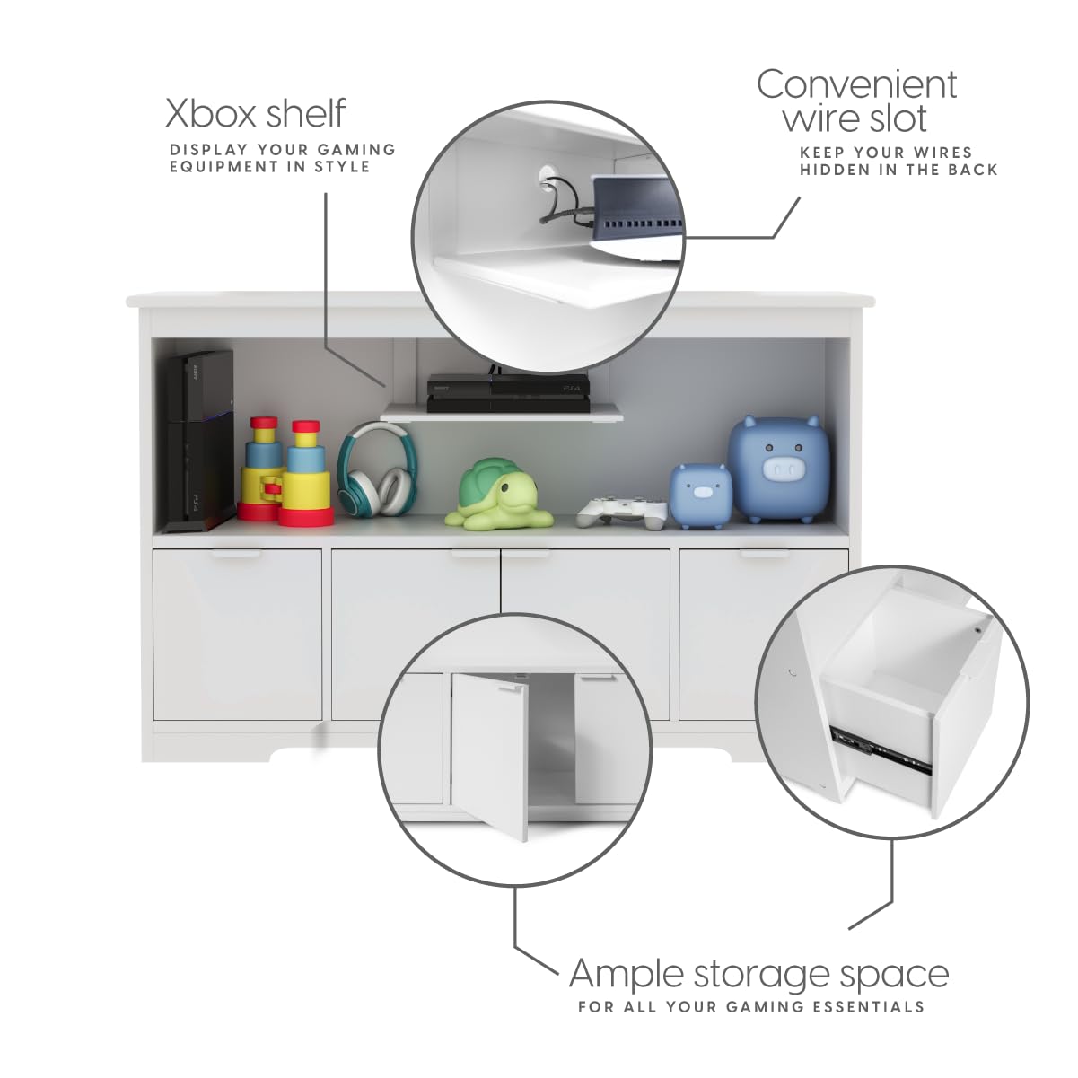 This versatile entertainment center combines functionality with practical design, offering ample storage space for your living room, bedroom, or playroom. Perfect for organizing media equipment, gaming consoles, toys, and accessories while keeping your space tidy and organized.