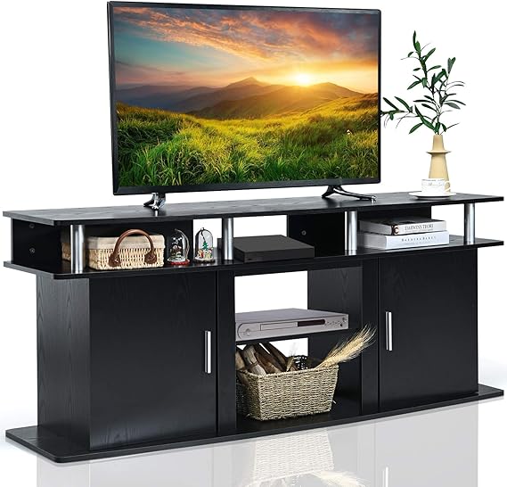 Two enclosed cabinets with doors keep clutter hidden while multiple open shelves provide easy access to frequently used items. The versatile design accommodates all your video and audio components, gaming consoles, and media collections.