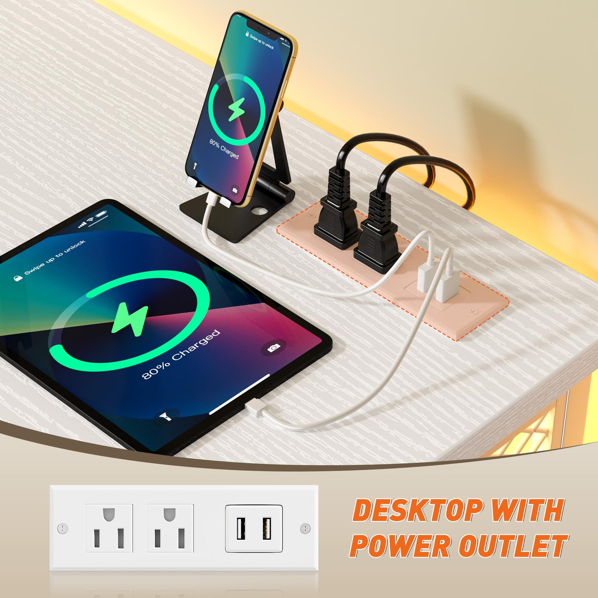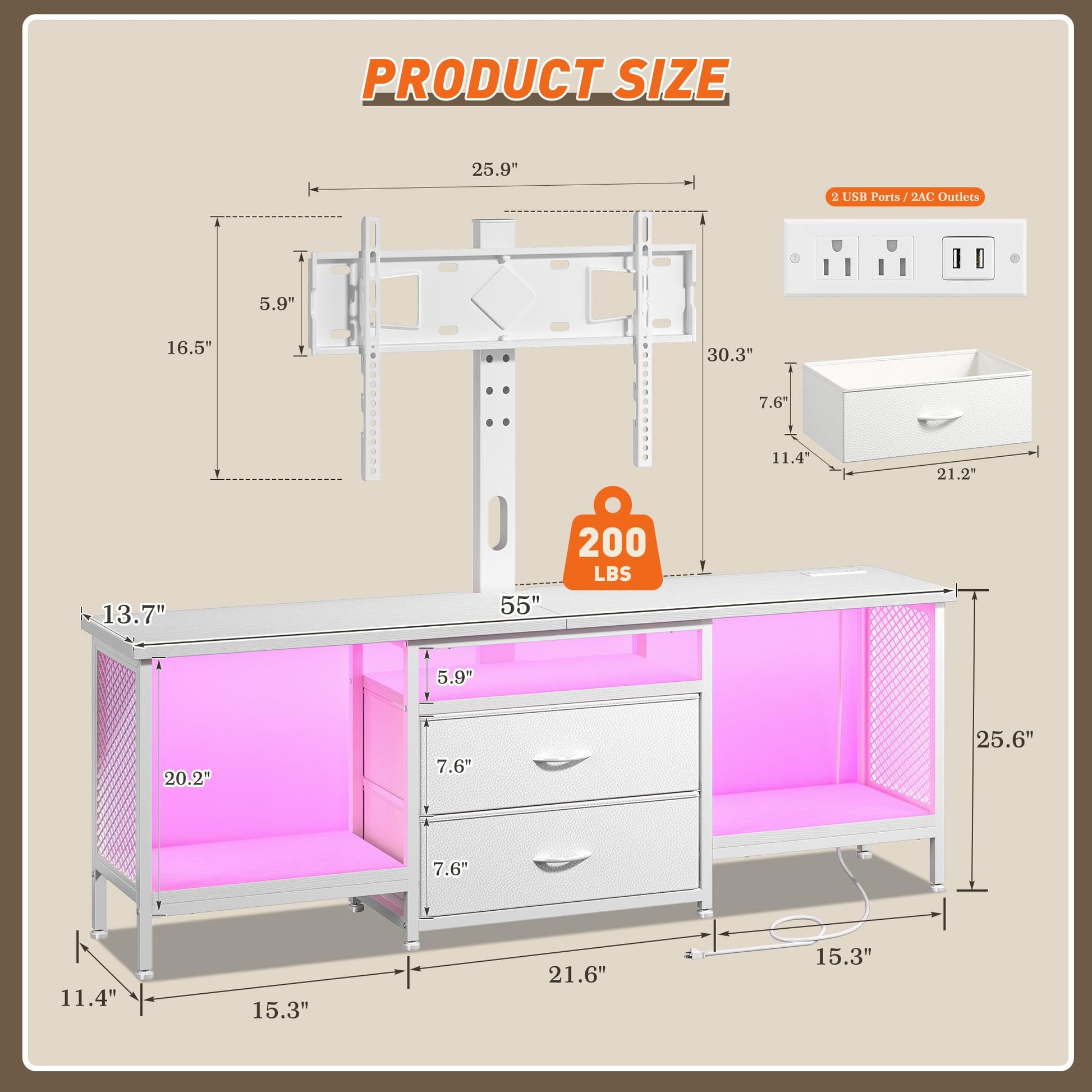 Equipped with a built-in charging station featuring 2 standard outlets and 2 USB ports, this stand powers multiple devices simultaneously including TVs, DVD players, WiFi routers, and phones. The integrated LED lighting system offers 21 dynamic modes and 20 static colors to create the perfect ambiance for your entertainment area.