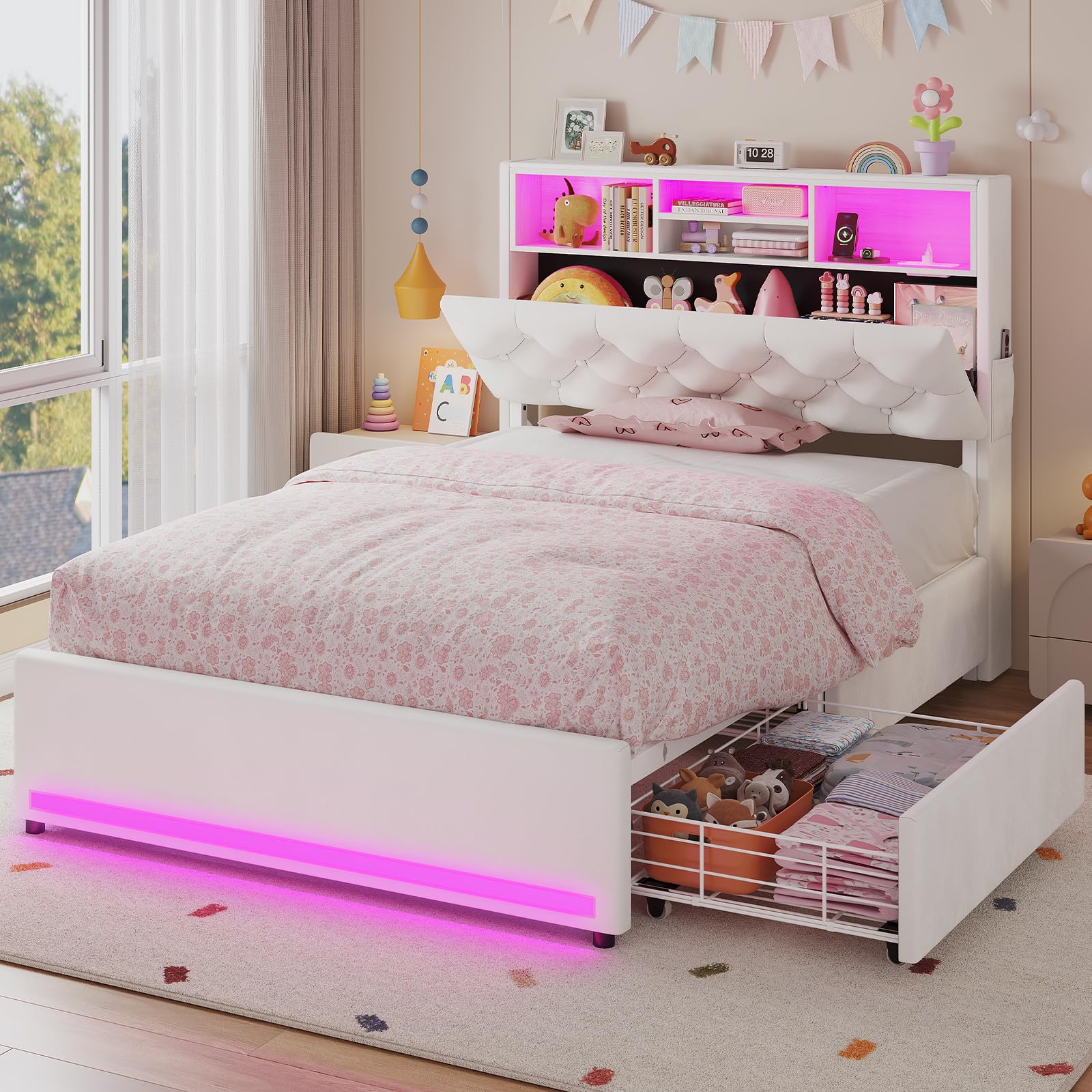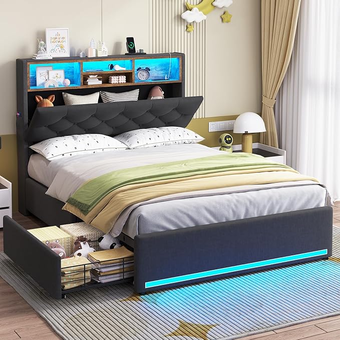| Special Features | LED Lighting, Power Outlet, 4 Storage Drawers, Bookcase Headboard |