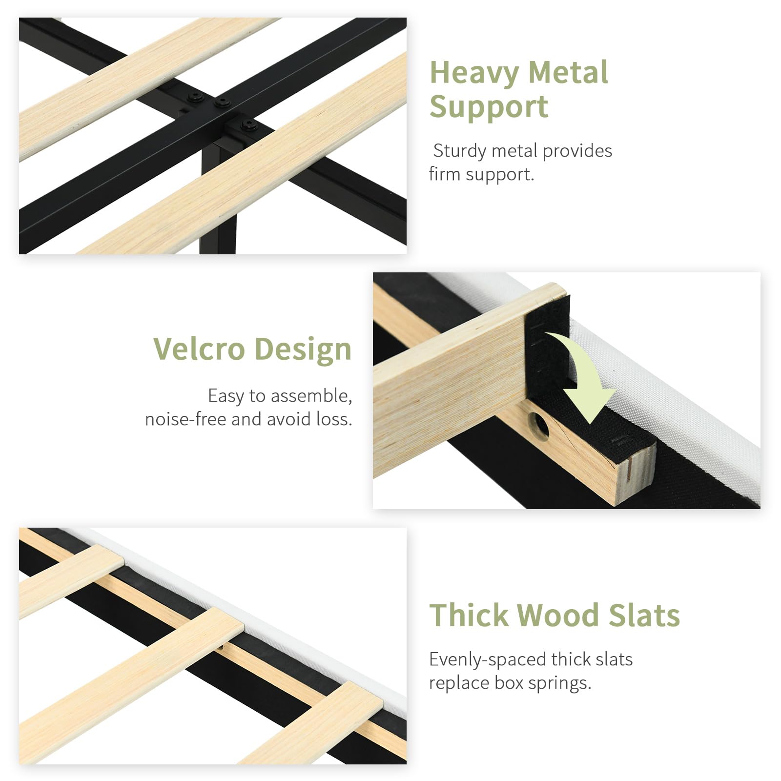 This modern twin bed frame combines style and functionality, featuring a sophisticated upholstered linen fabric headboard and robust wood slat support system. Designed for easy assembly and long-lasting durability, this platform bed frame eliminates the need for a box spring while providing excellent support and comfort.