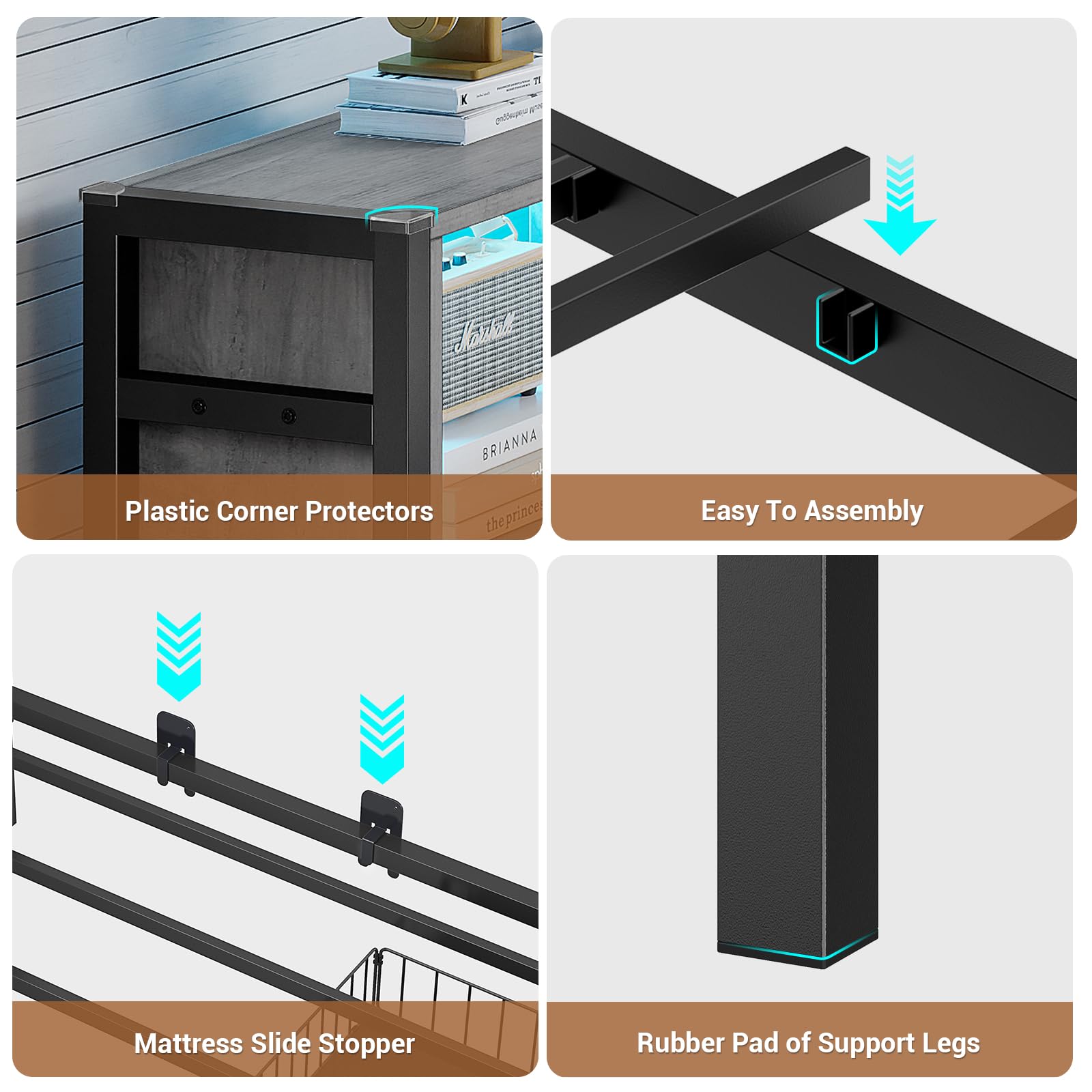 - Durable Metal Platform: Sturdy construction with mattress slide stoppers and protective corner guards