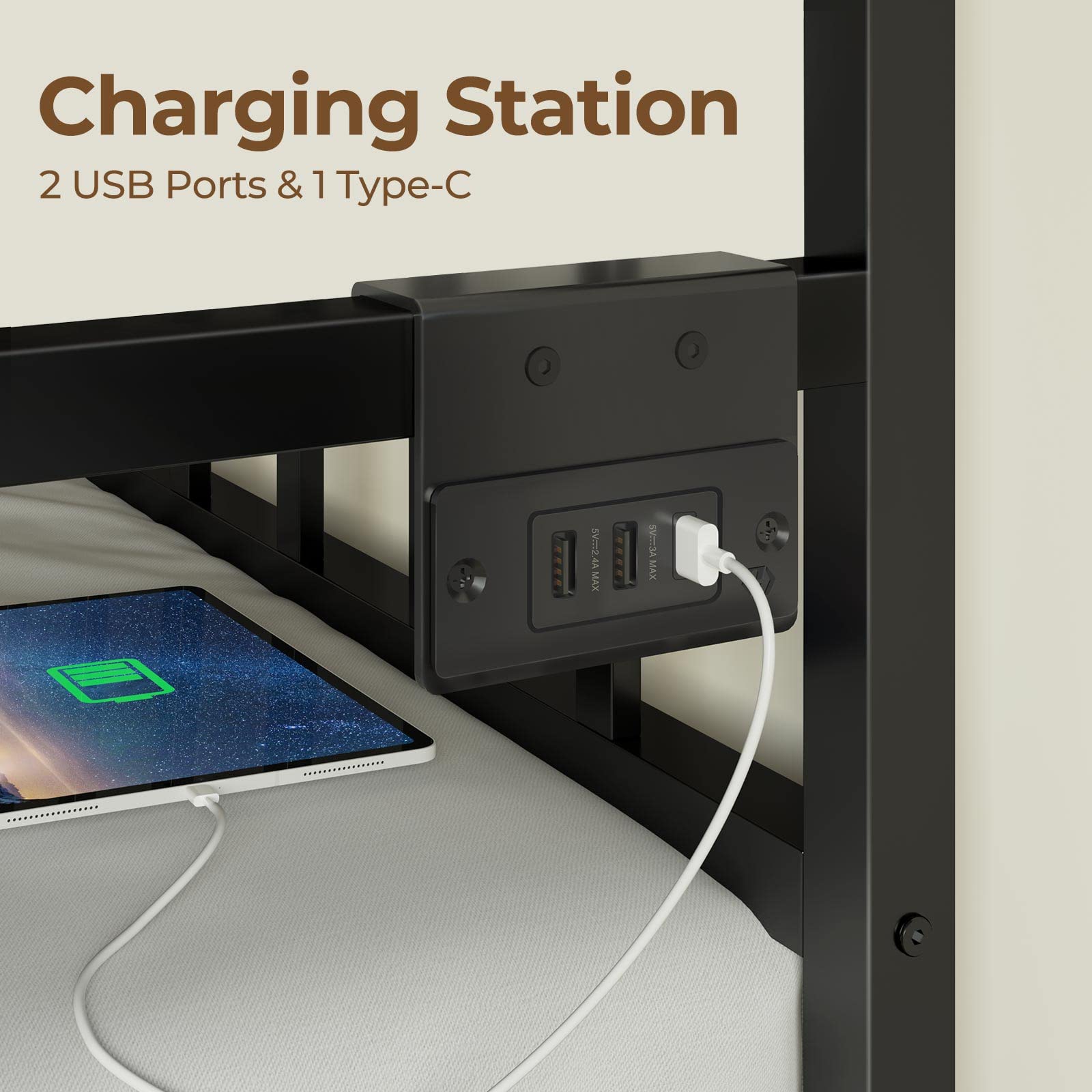 - Built-in charging station for easy device access