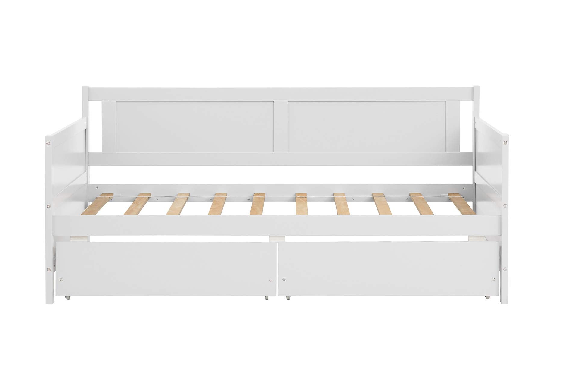 This twin daybed with storage drawers is adaptable to anywhere in the house, not only limited to bedroom. The twin size dimension makes the bed the perfect addition to any bedroom, living room, guest room, children's room, and tight spaces. This daybed provides a stylish sofa during the day and a comfortable bed at night.