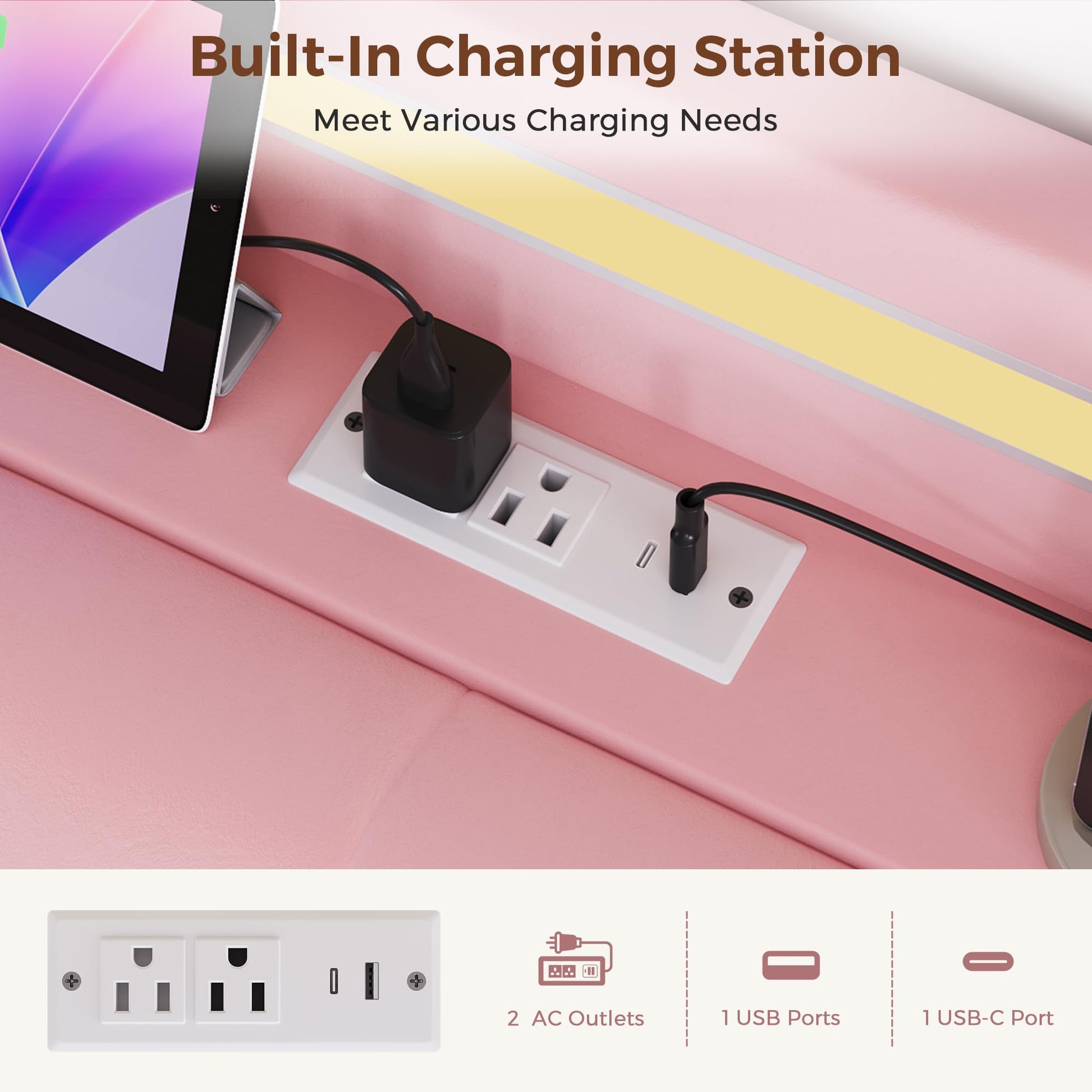 | Special Features | LED Lighting, Charging Station, Button Tufted Design |