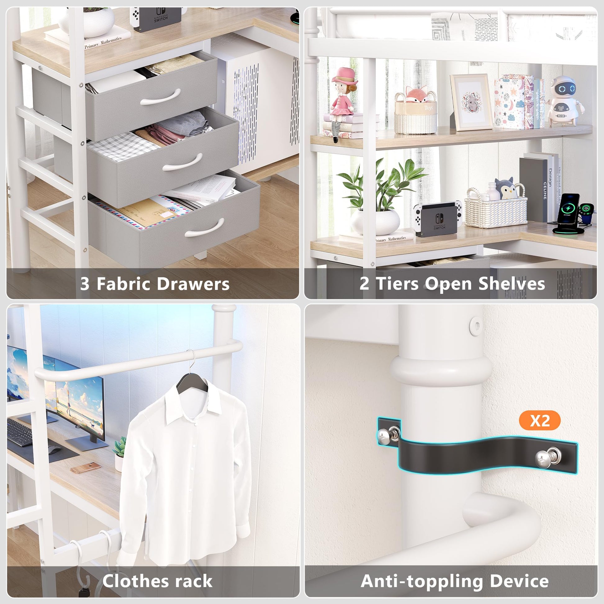 This versatile loft bed is designed to transform any bedroom into a multi-functional space, combining comfort, storage, and productivity in one compact footprint.