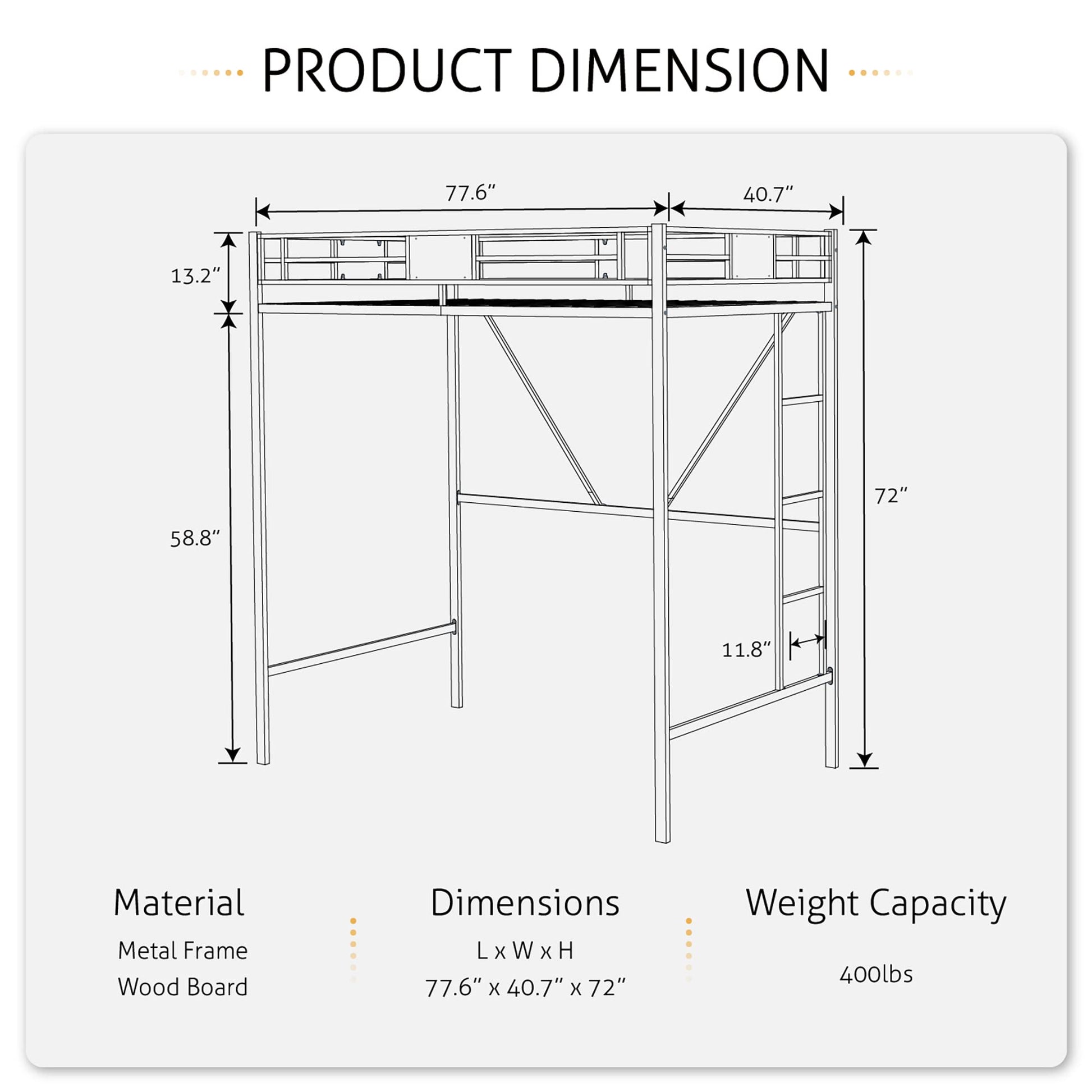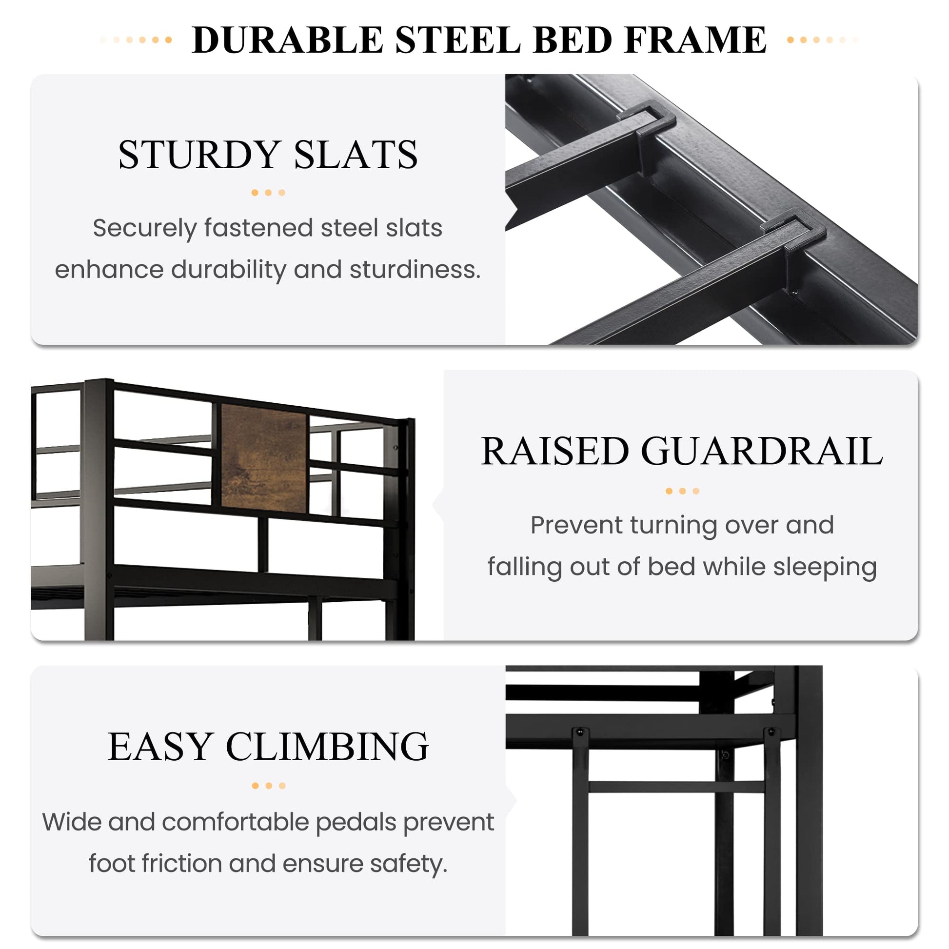 | Features | Ladder, guardrail, no box spring needed |