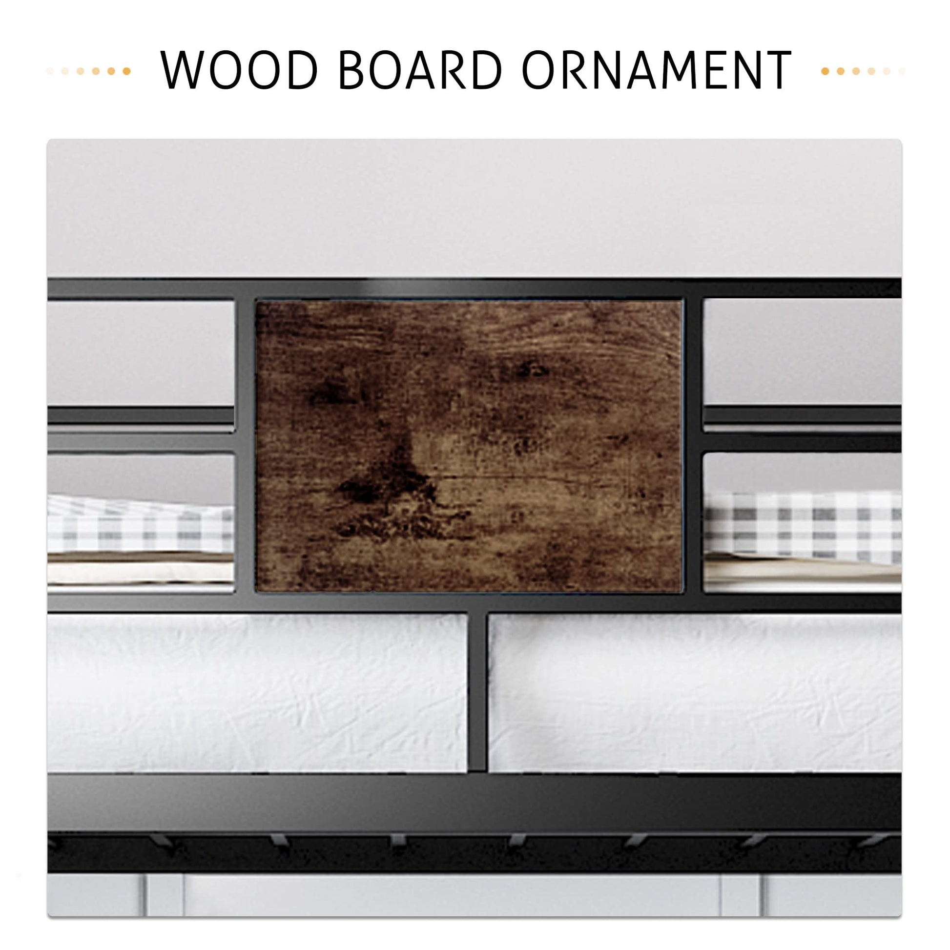The bed features a secure ladder for easy access and full-length guardrails for safety. Metal slat support eliminates the need for a box spring, providing reliable mattress support while maintaining proper airflow. The rustic design aesthetic complements both modern and traditional decor styles.