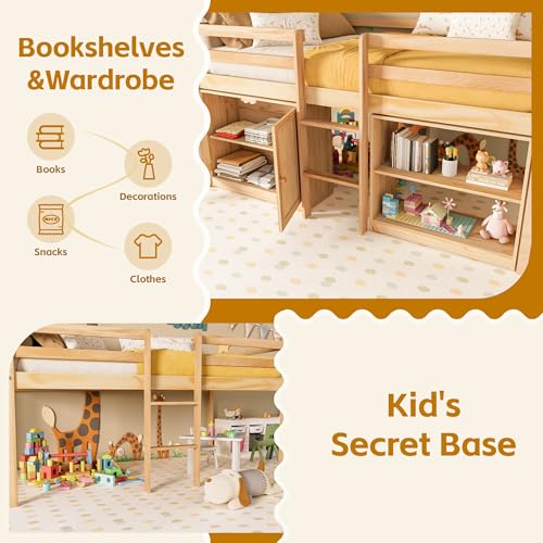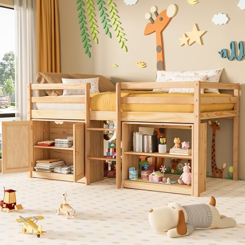 Transform your child's bedroom with this versatile twin loft bed featuring integrated LED lights and smart storage solutions. Crafted from durable pine wood, this low loft bed combines safety, functionality, and fun in one thoughtfully designed piece.